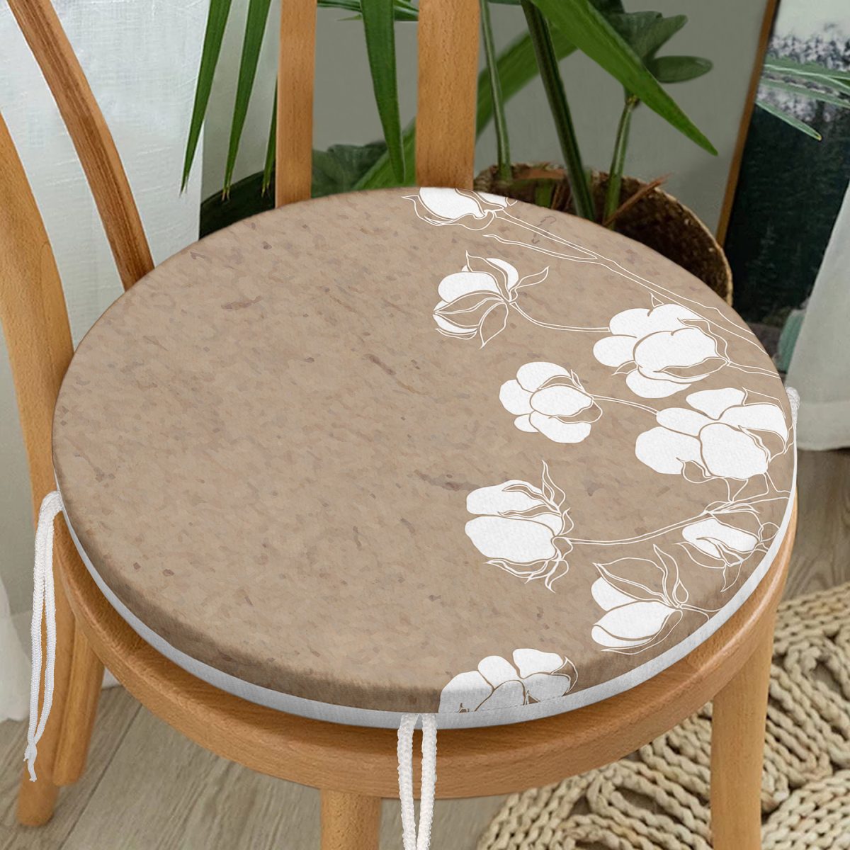 Renkli Zemin Üzerinde Beyaz Çiçek Desenli Dijital Baskılı Modern Yuvarlak Fermuarlı Sandalye Minderi