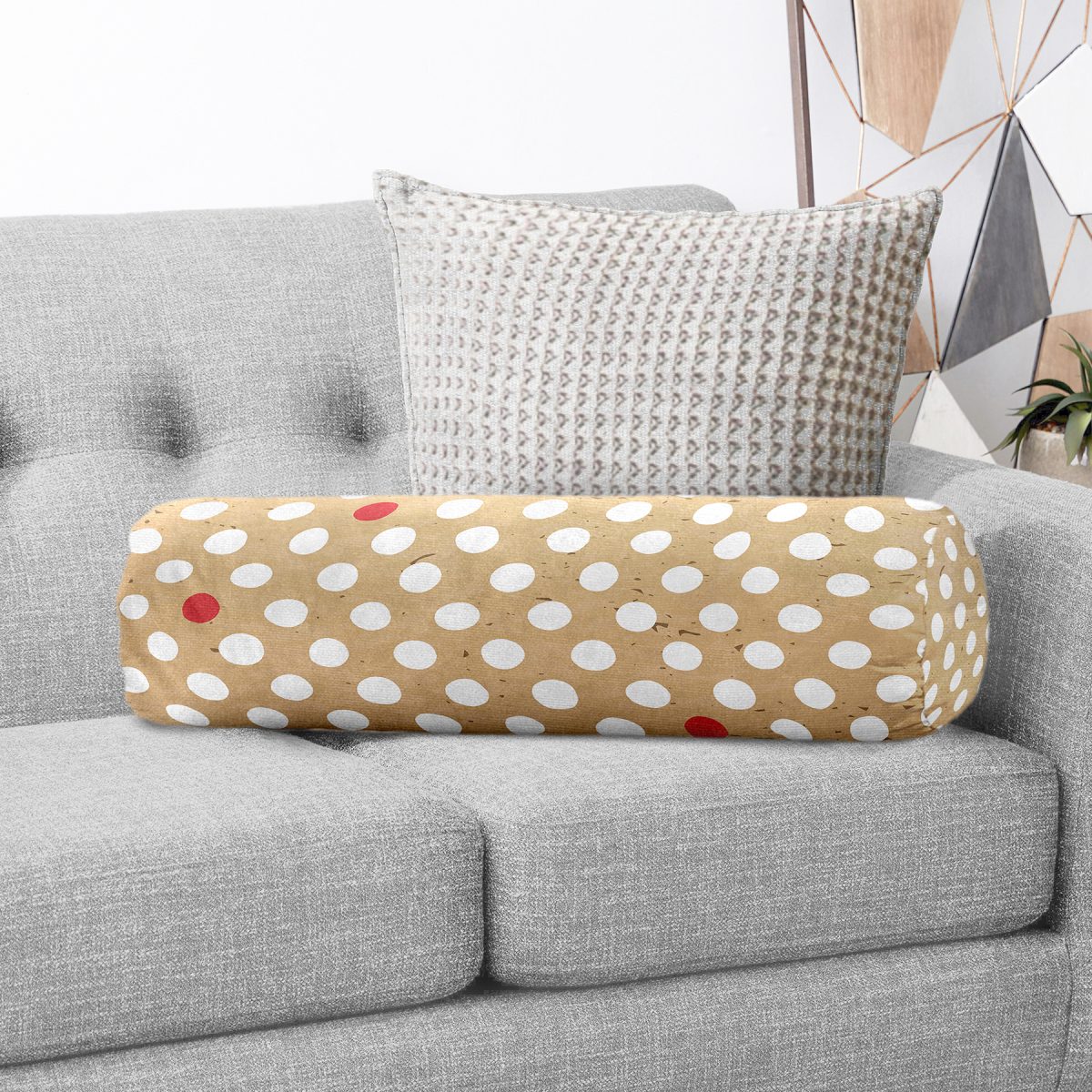Renkli Zemin Üzerinde Beyaz Puantiyeli Dijital Baskılı Modern İç Dolgulu Fermuarlı Çok Amaçlı Silindir Yastık Kırlent