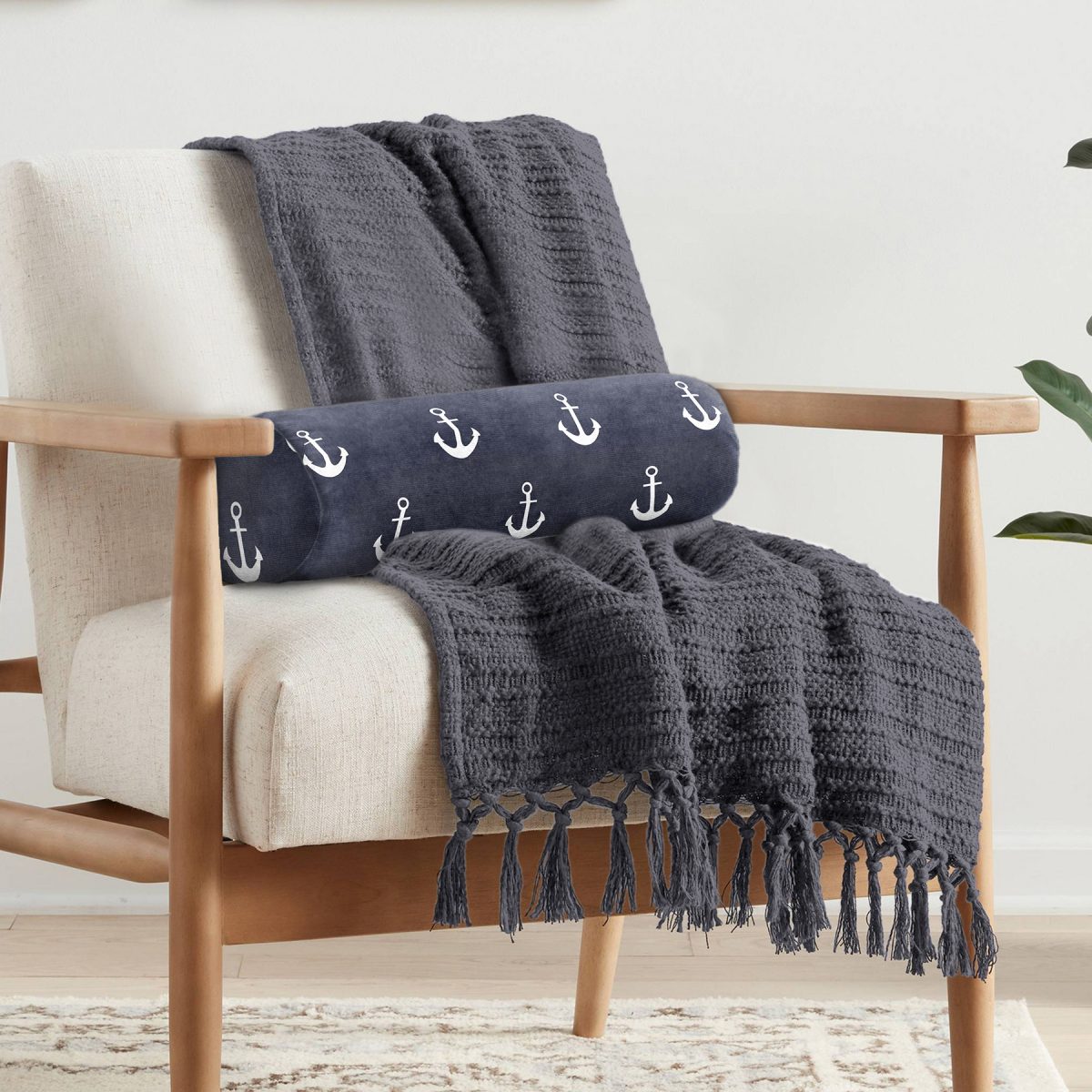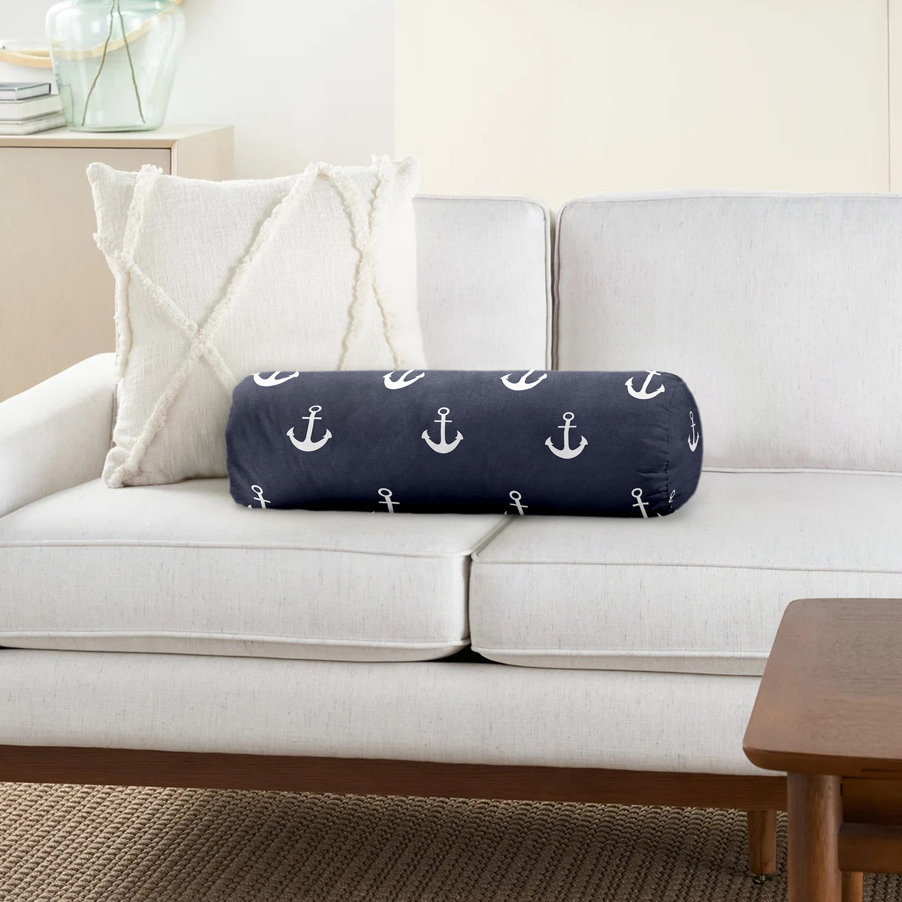 Renkli Zemin Üzerinde Çapa Desenli Dijital Baskılı Modern İç Dolgulu – Fermuarlı Süet Berjer Silindir Yastık Kırlent