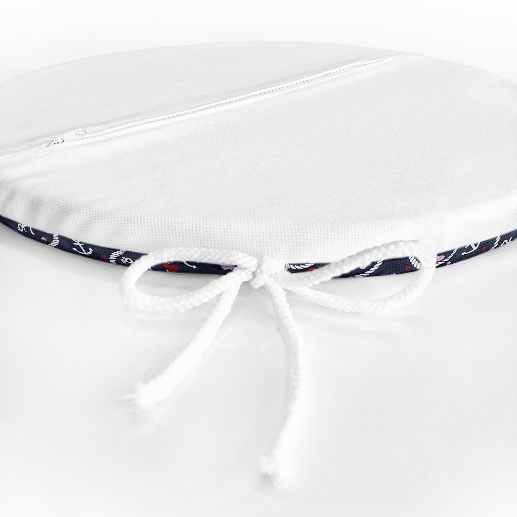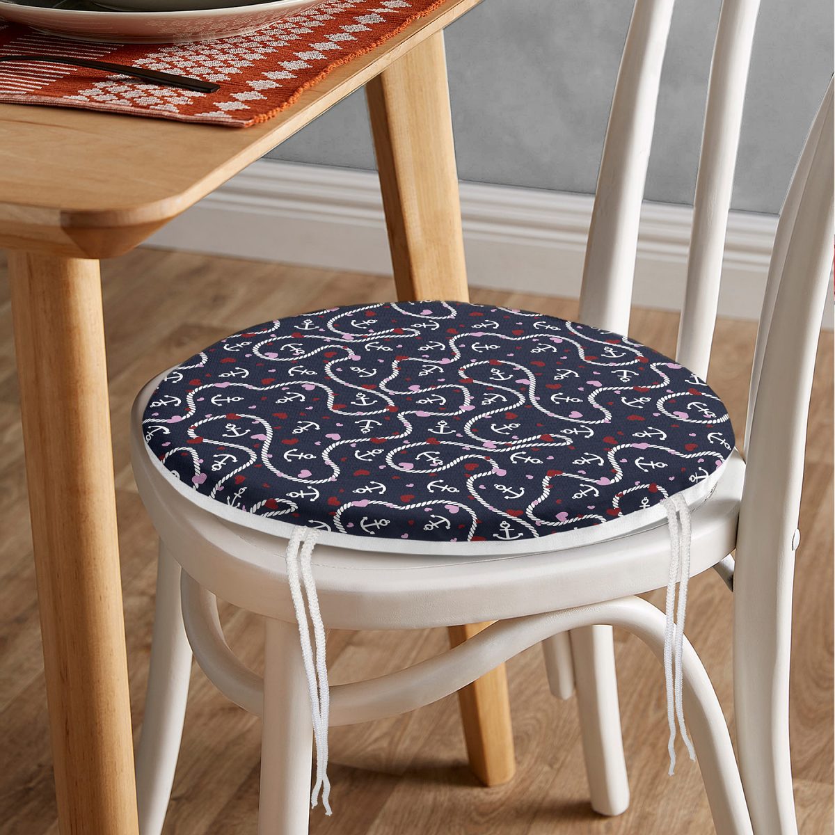Renkli Zemin Üzerinde Çapa Ve Halat Desenli Dijital Baskılı Modern Yuvarlak Fermuarlı Sandalye Minderi