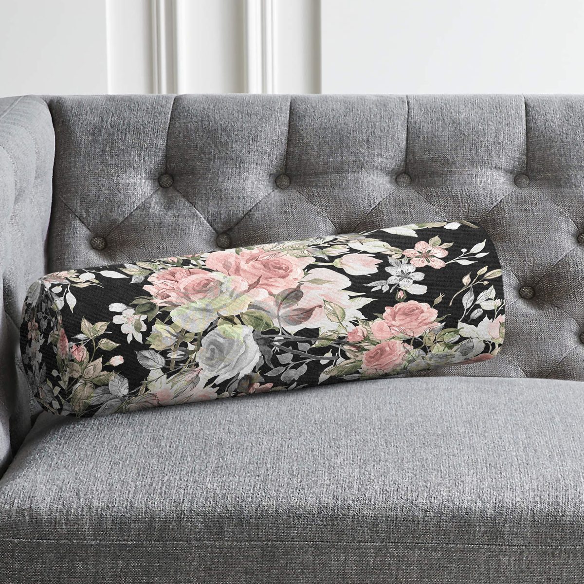 Renkli Zemin Üzerinde Çiçek Desenli Dijital Baskılı Modern İç Dolgulu – Fermuarlı Süet Silindir Rulo Yastık Kırlent