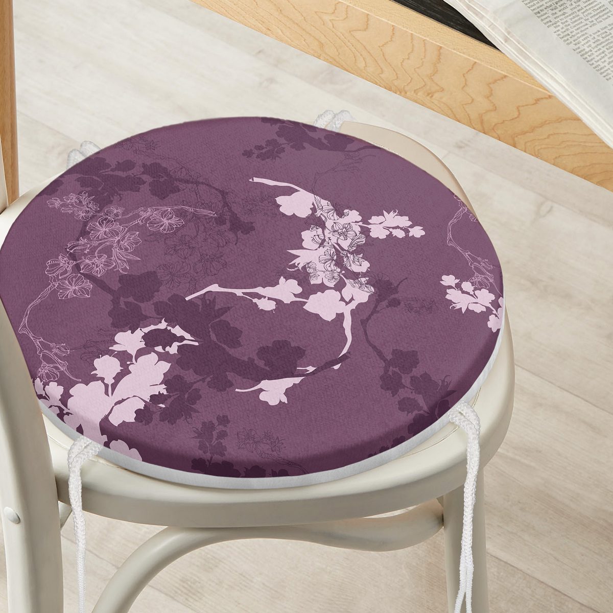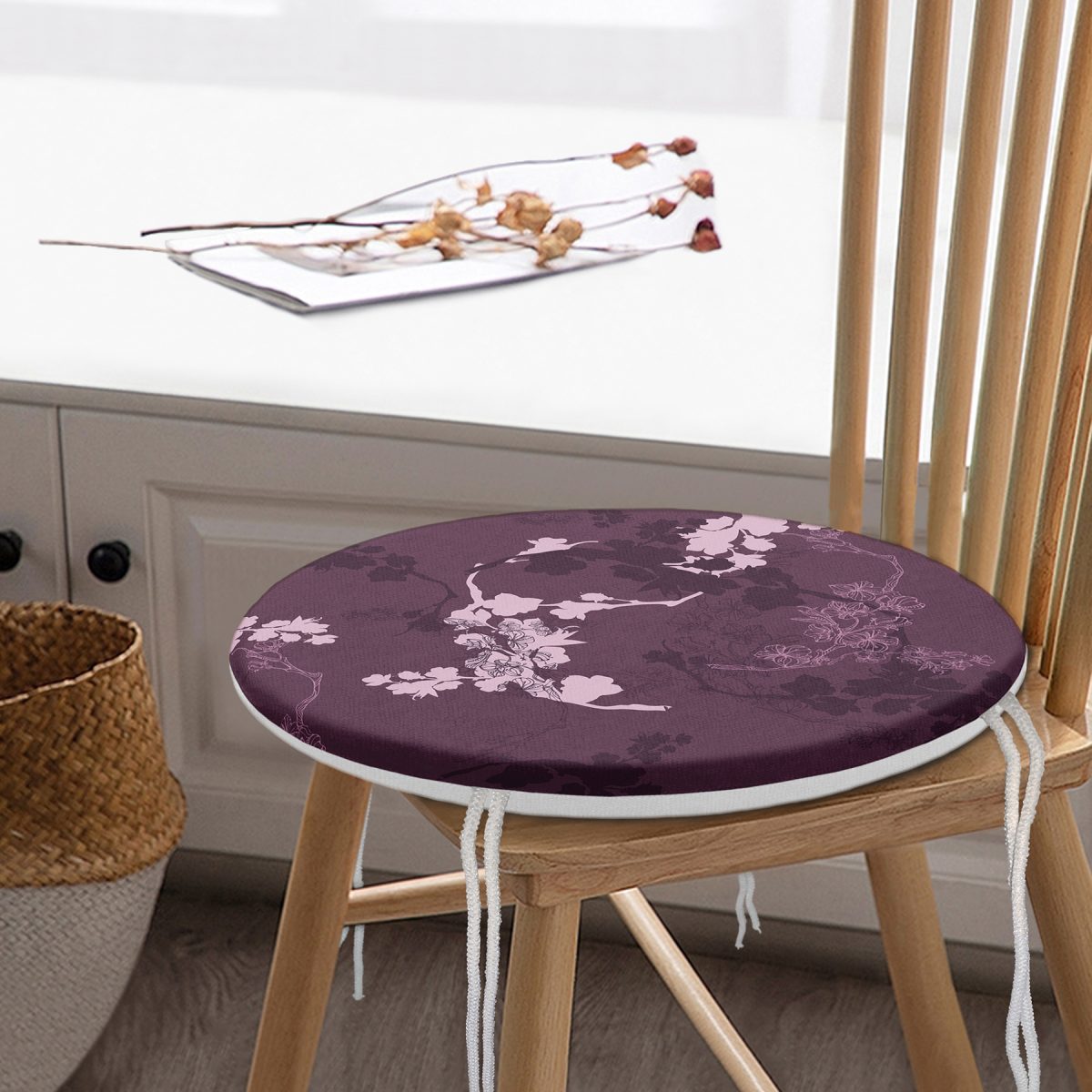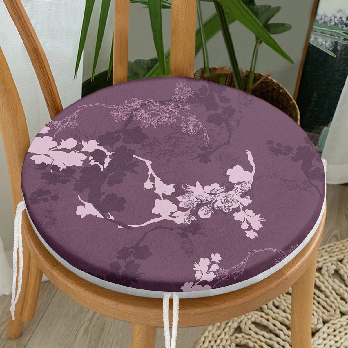 Renkli Zemin Üzerinde Çiçek Desenli Dijital Baskılı Modern Yuvarlak Fermuarlı Sandalye Minderi