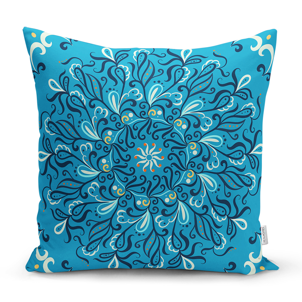 Renkli Zemin Üzerinde Çini Desenli Dijital Baskılı Modern Yastık Kırlent Kılıfı Realhomes