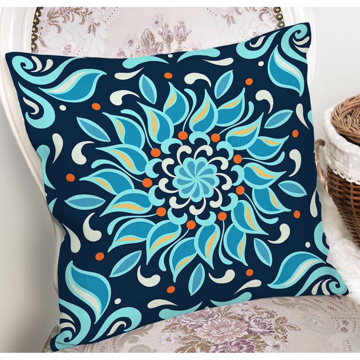 Renkli Zemin Üzerinde Çini Desenli Dijital Baskılı Modern Yastık Kırlent Kılıfı Realhomes