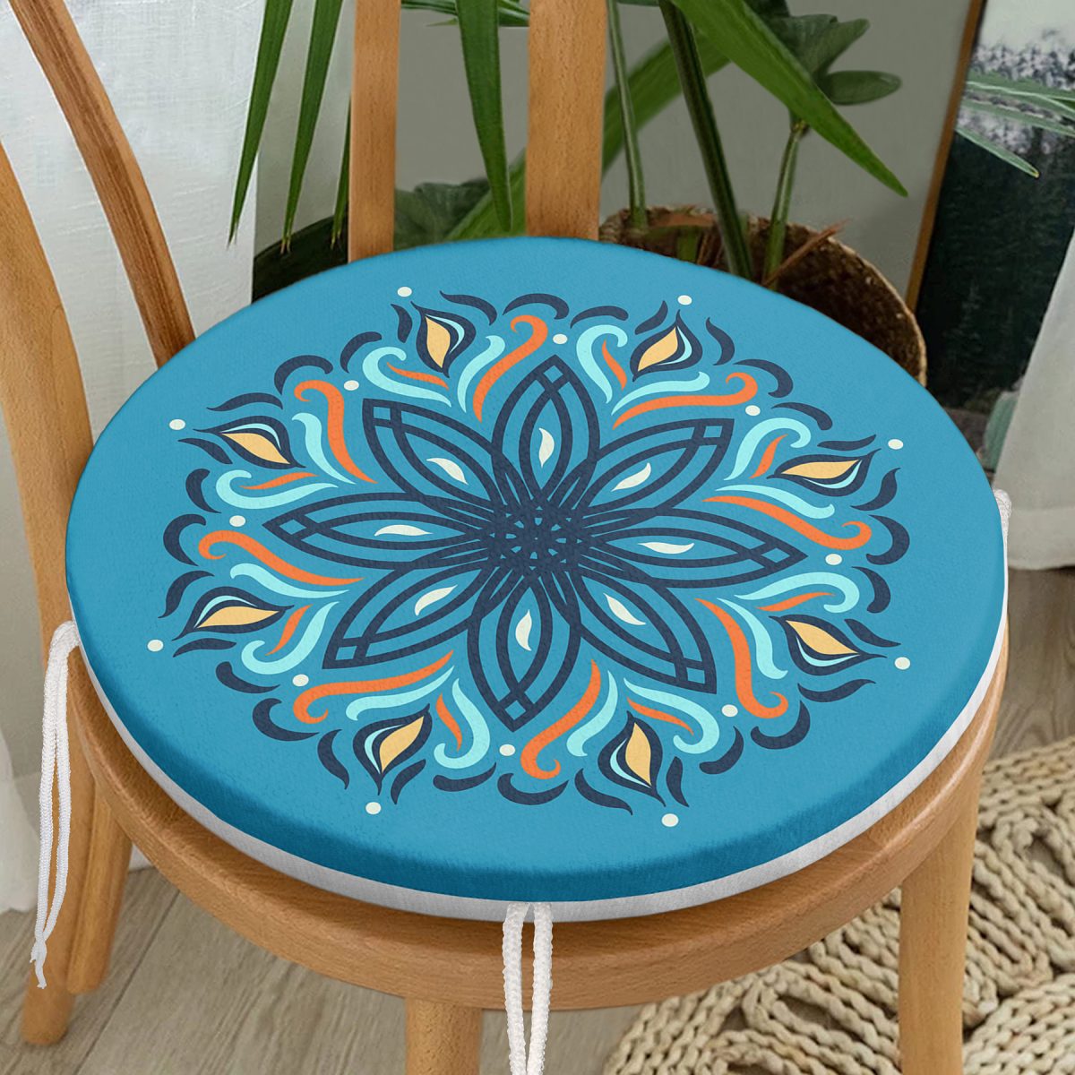 Renkli Zemin Üzerinde Çini Desenli Dijital Baskılı Modern Yuvarlak Fermuarlı Sandalye Minderi