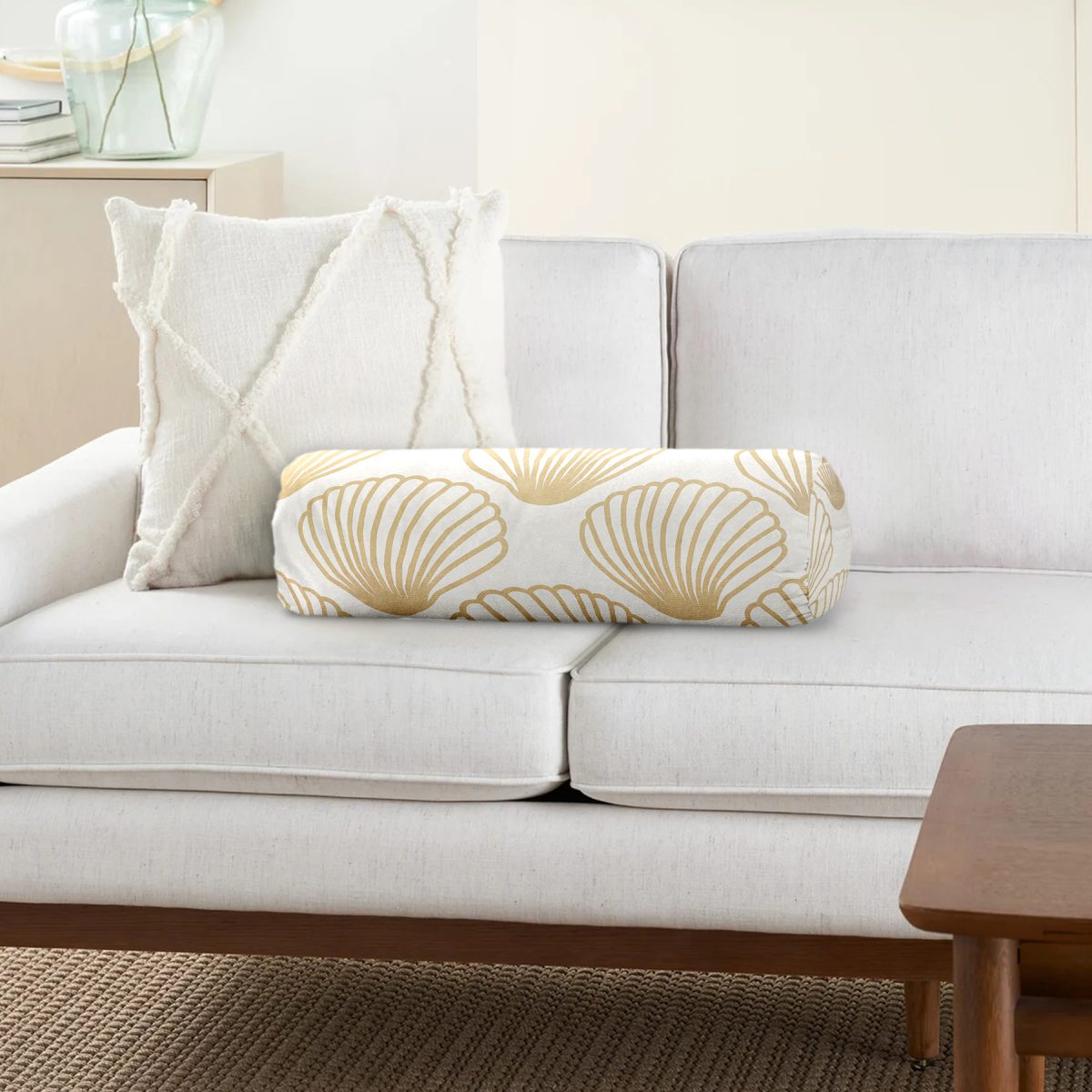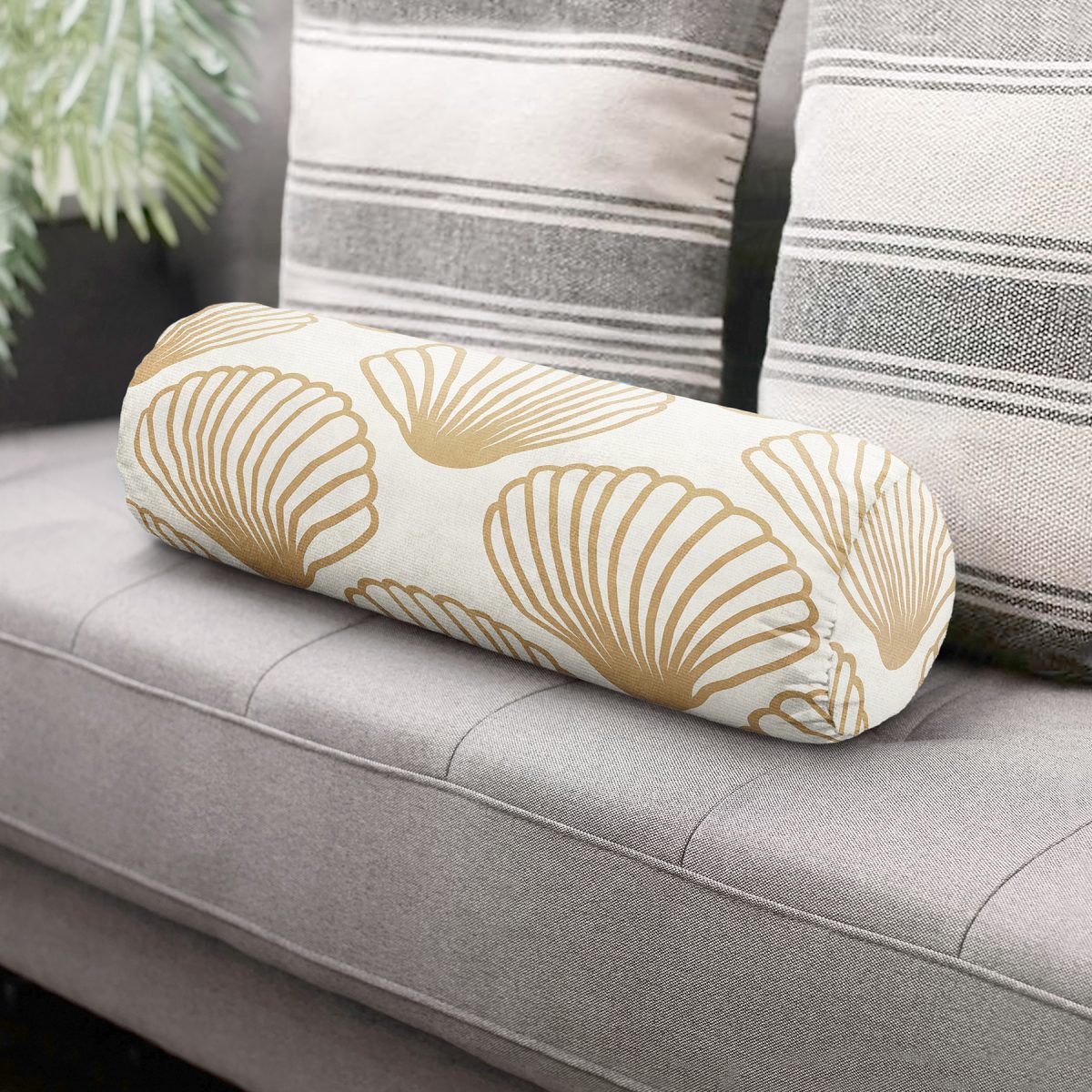 Renkli Zemin Üzerinde Deniz Kabuğu Desenli Dijital Baskılı Modern İç Dolgulu Süet Silindir Yastık Kırlent – Bel Yastığı