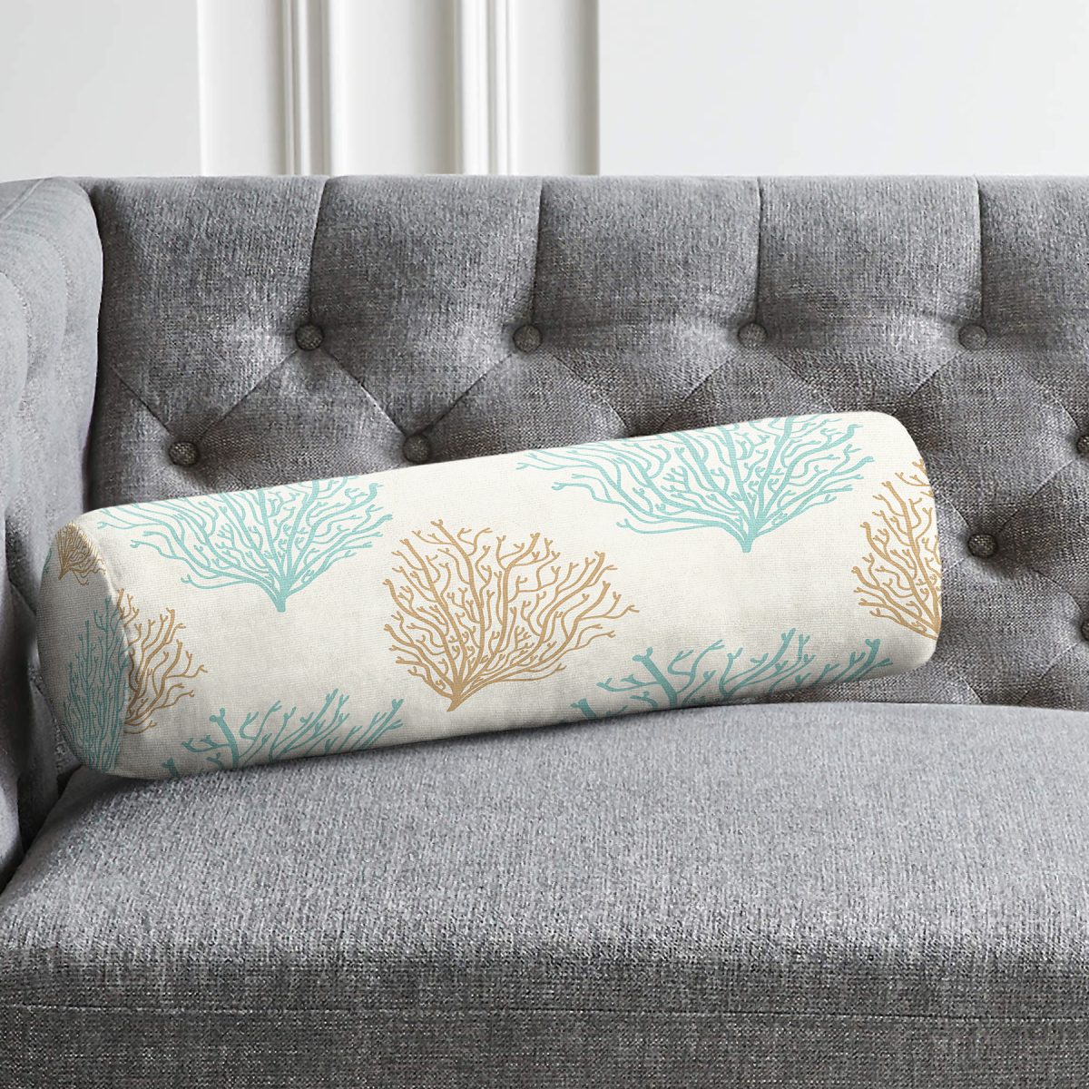 Renkli Zemin Üzerinde Deniz Otu Desenli Dijital Baskılı Modern İç Dolgulu – Fermuarlı Süet Silindir Daire Yastık Kırlent