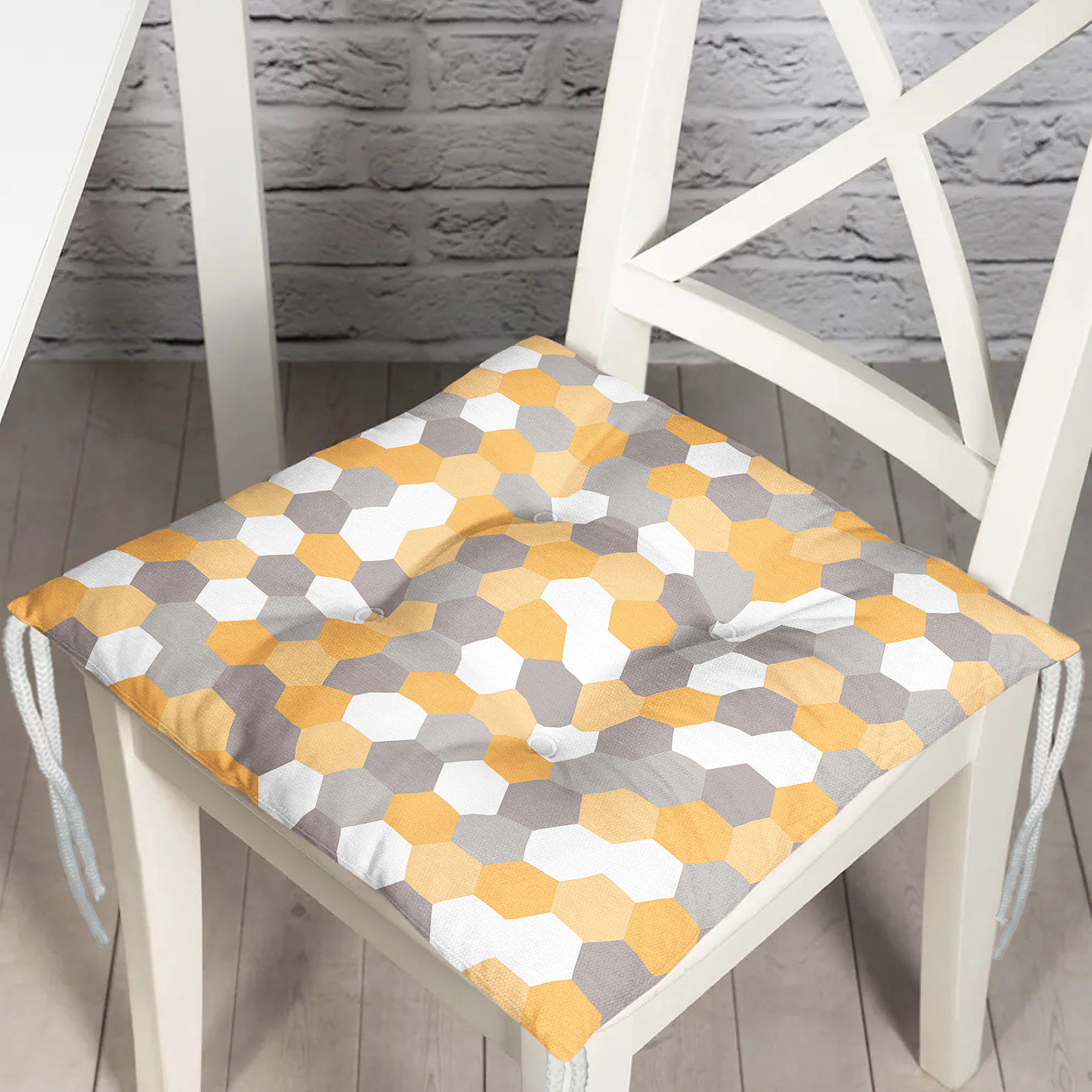 Renkli Zemin Üzerinde Geometrik Çizim Dijital Baskılı Modern Pofuduk Sandalye Minderi Realhomes
