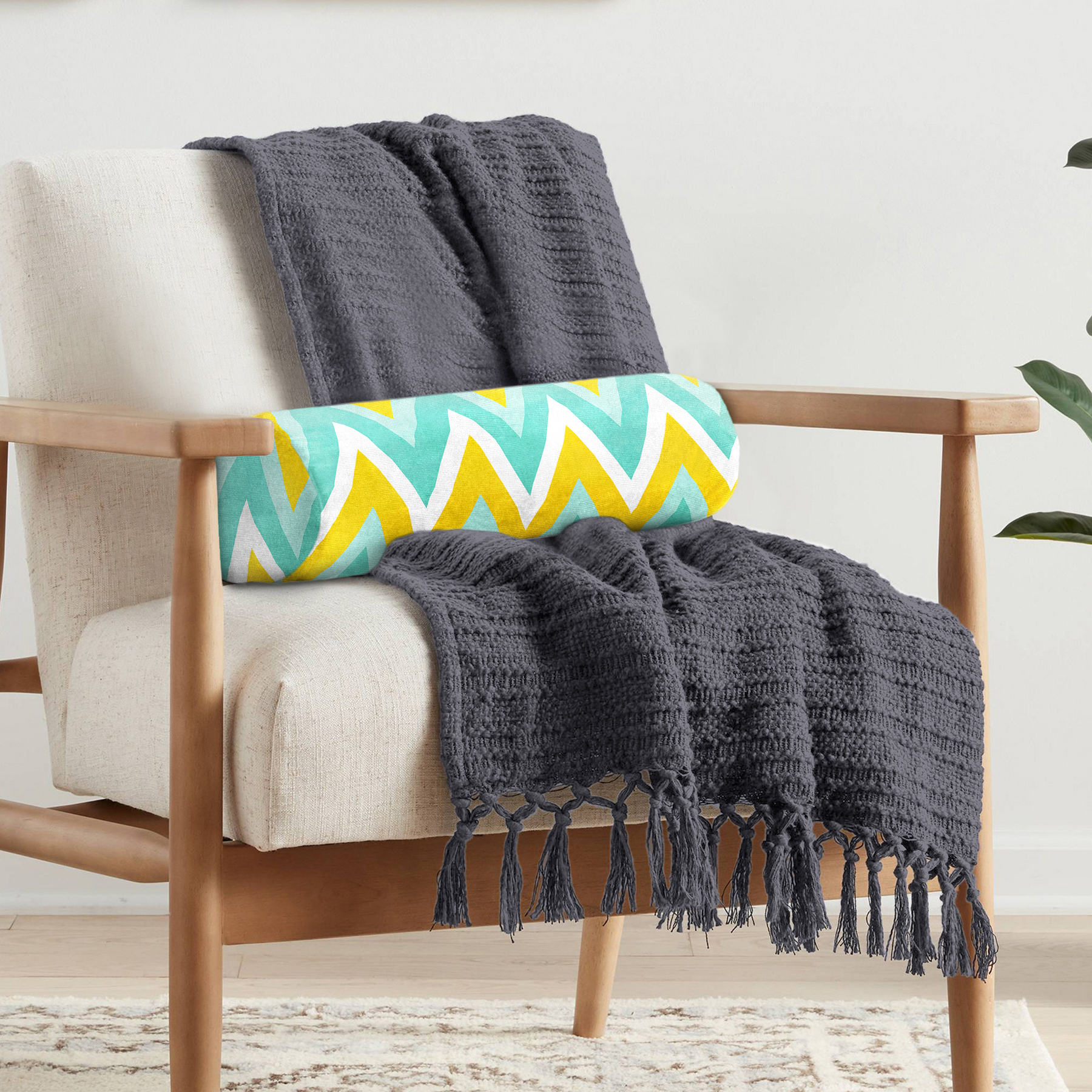 Renkli Zemin Üzerinde Geometrik Zikzak Desenli Dijital Baskılı Modern İç Dolgulu Süet Silindir Yastık Kırlent – Bel Yastığı