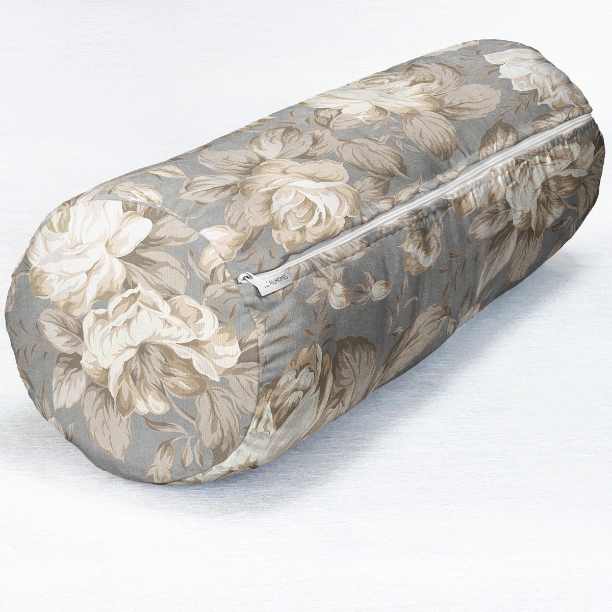 Renkli Zemin Üzerinde Gül Desenli Dijital Baskılı Modern İç Dolgulu Fermuarlı Çok Amaçlı Silindir Yastık Kırlent