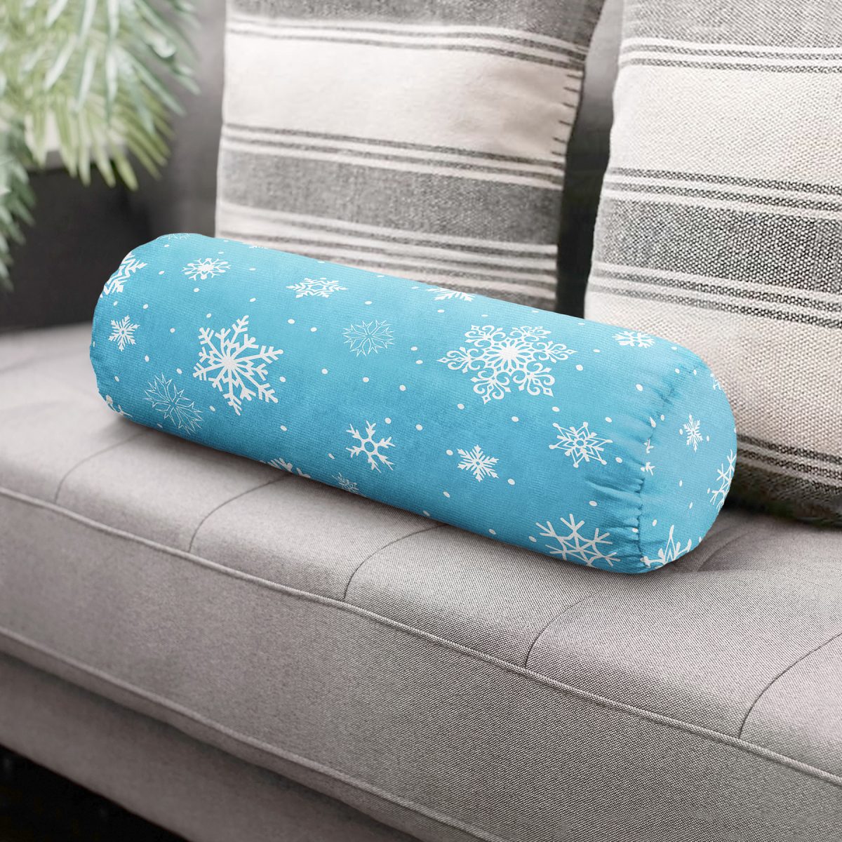 Renkli Zemin Üzerinde Kar tanesi Desenli Dijital Baskılı Modern İç Dolgulu Fermuarlı Çok Amaçlı Silindir Yastık Kırlent