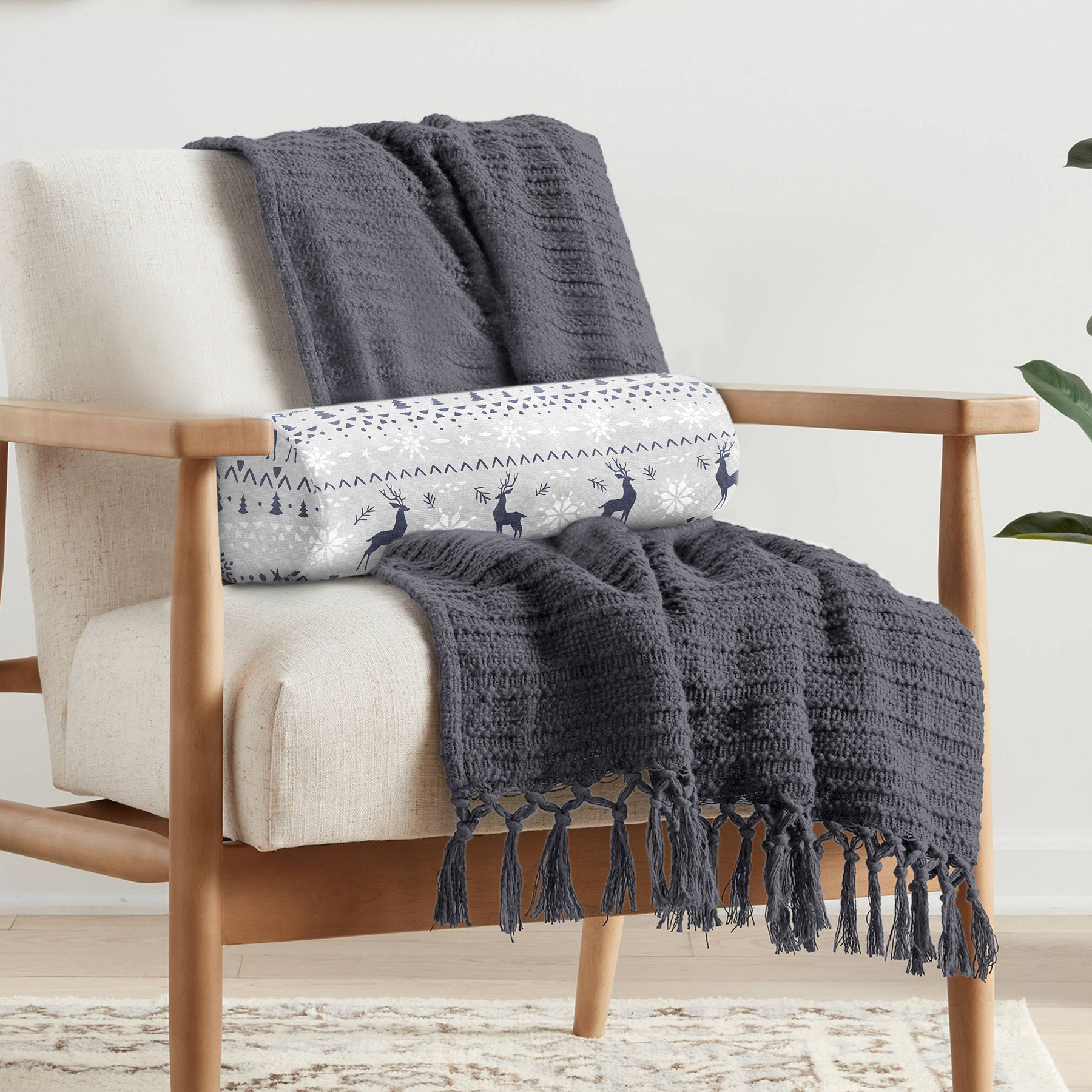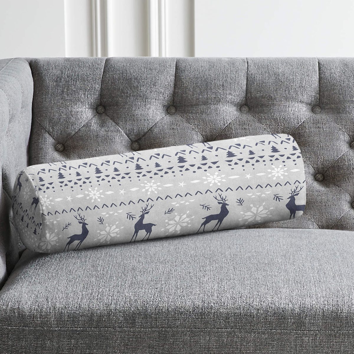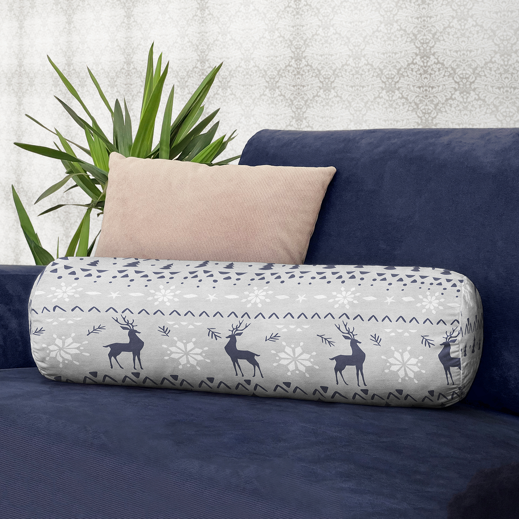 Renkli Zemin Üzerinde Kar tanesi Desenli Geyik Motifli Dijital Baskılı Modern İç Dolgulu – Fermuarlı Süet Silindir Rulo Yastık Kırlent