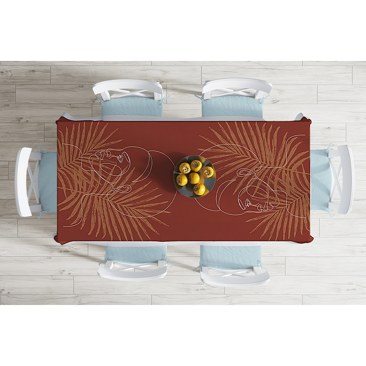 Renkli Zemin Üzerinde Onedraw Çizimli Bayan Silüeti Dijital Baskılı Modern Masa Örtüsü
