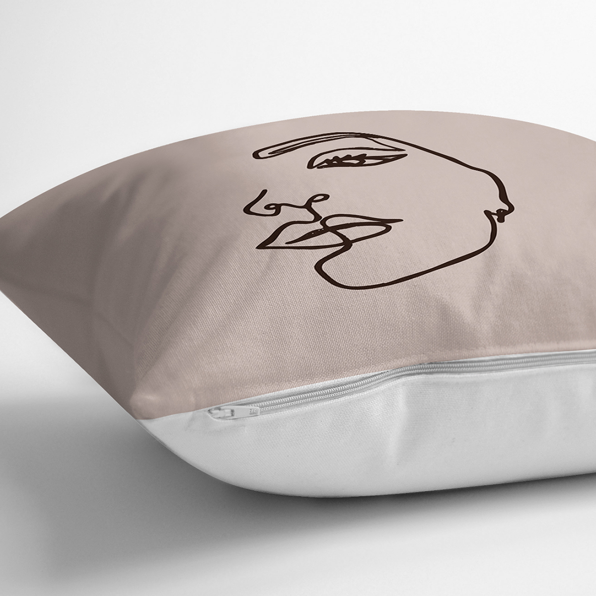 Renkli Zemin Üzerinde Onedraw Çizimli Bayan Silüeti Yastık Kırlent Kılıfı