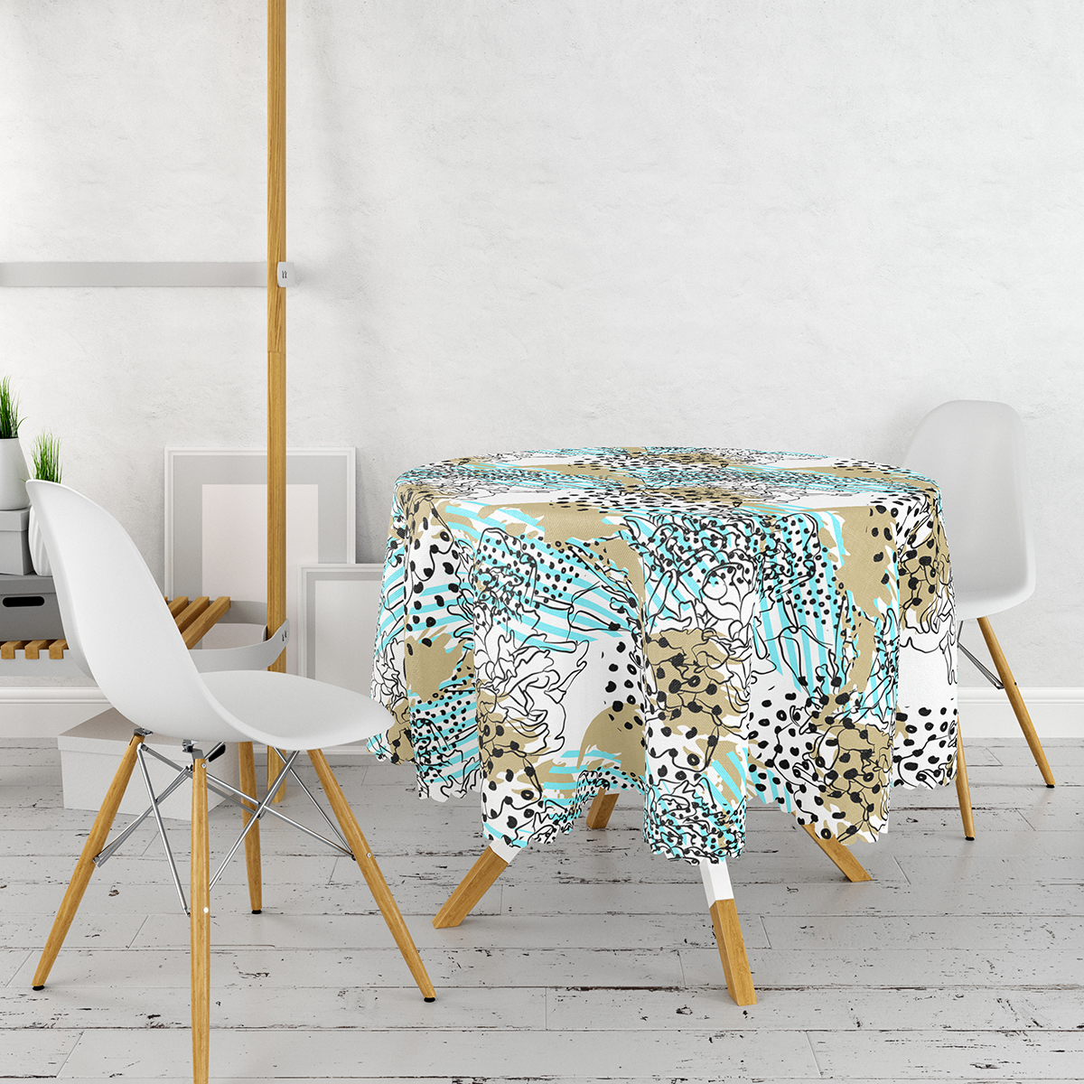 Renkli Zemin Uzerinde Onedraw Çizimli Dijital Baskılı Modern Yuvarlak Masa Örtüsü – Çap 140cm