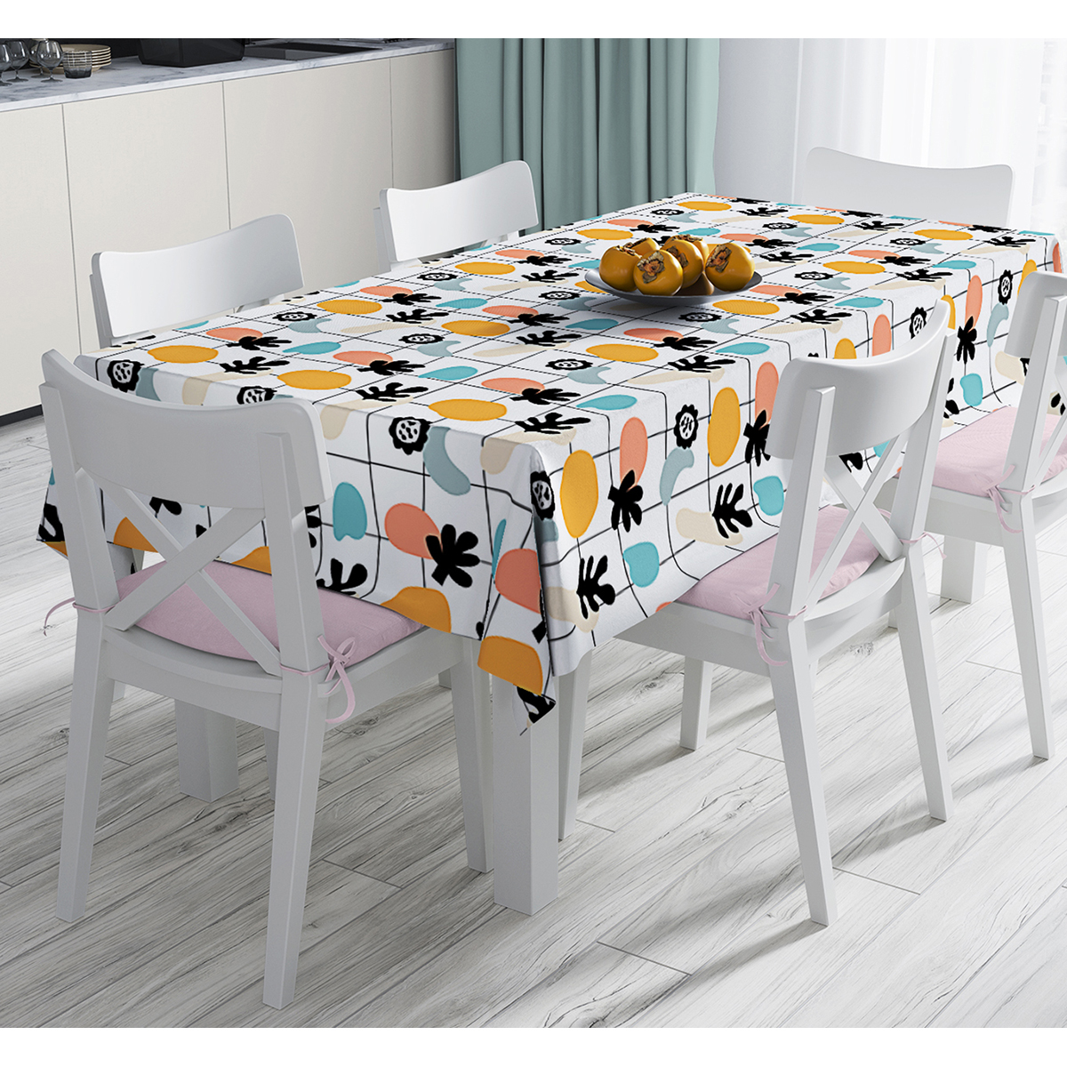 Renkli Zemin Üzerinde Onedraw Çizimli Yaprak Motifli Dijital Baskılı Modern Masa Örtüsü