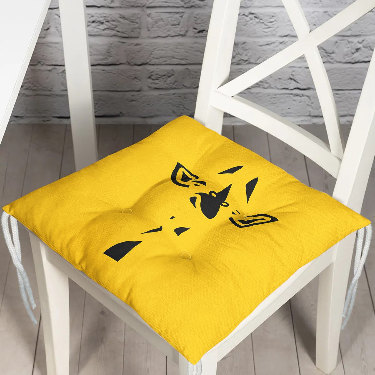 Renkli Zemin Üzerinde Onedraw Çizimli Zürafa Silüeti Dijital Baskılı Modern Pofuduk Sandalye Minderi Realhomes