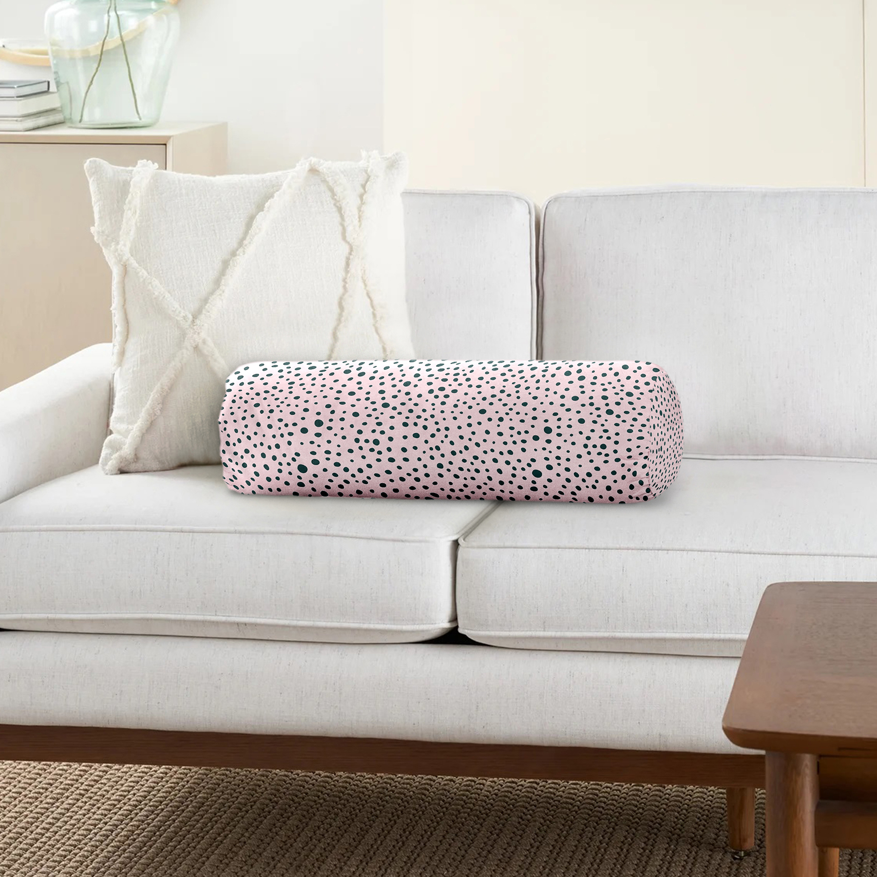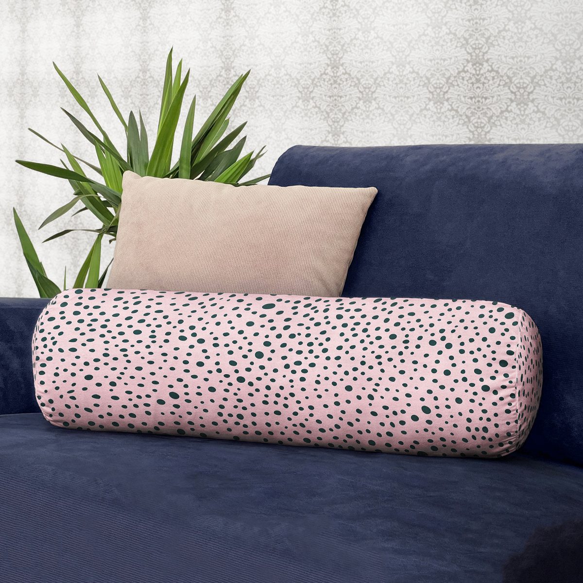 Renkli Zemin Üzerinde Siyah Puantiye Desenli Dijital Baskılı Modern İç Dolgulu Yumuşak Silindir Form Yastık Kırlent