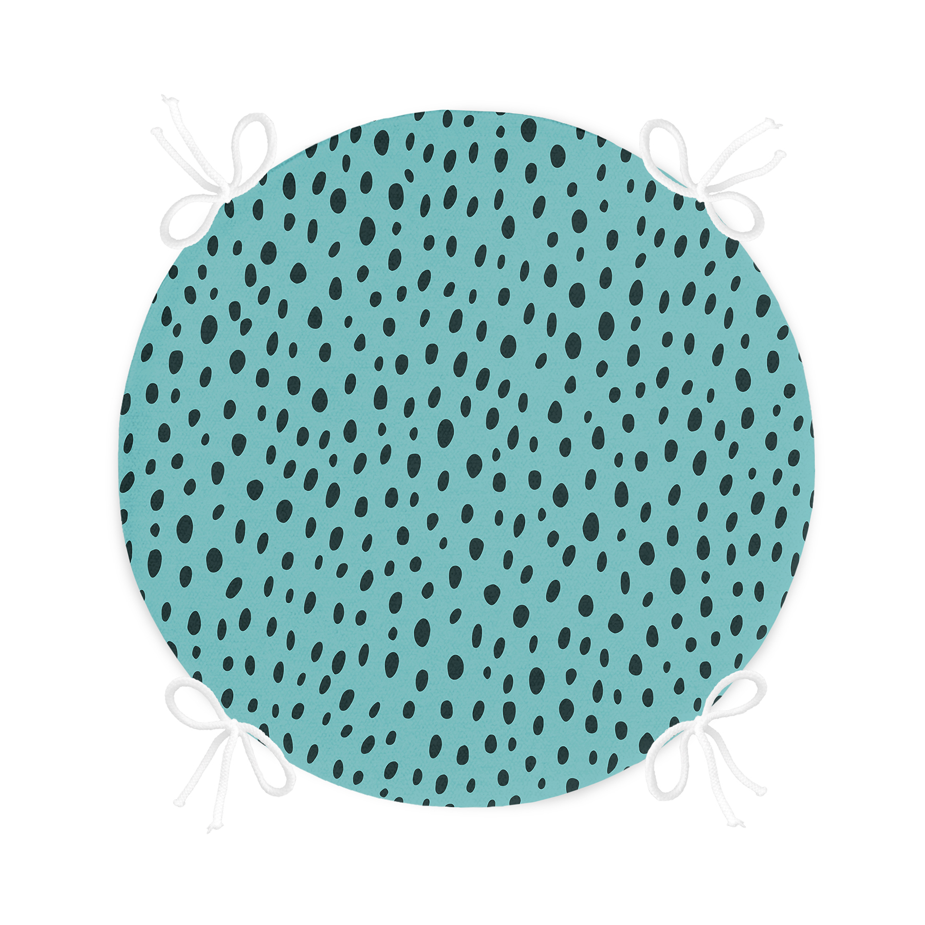 Renkli Zemin Üzerinde Siyah Puantiye Desenli Dijital Baskılı Modern Yuvarlak Fermuarlı Sandalye Minderi