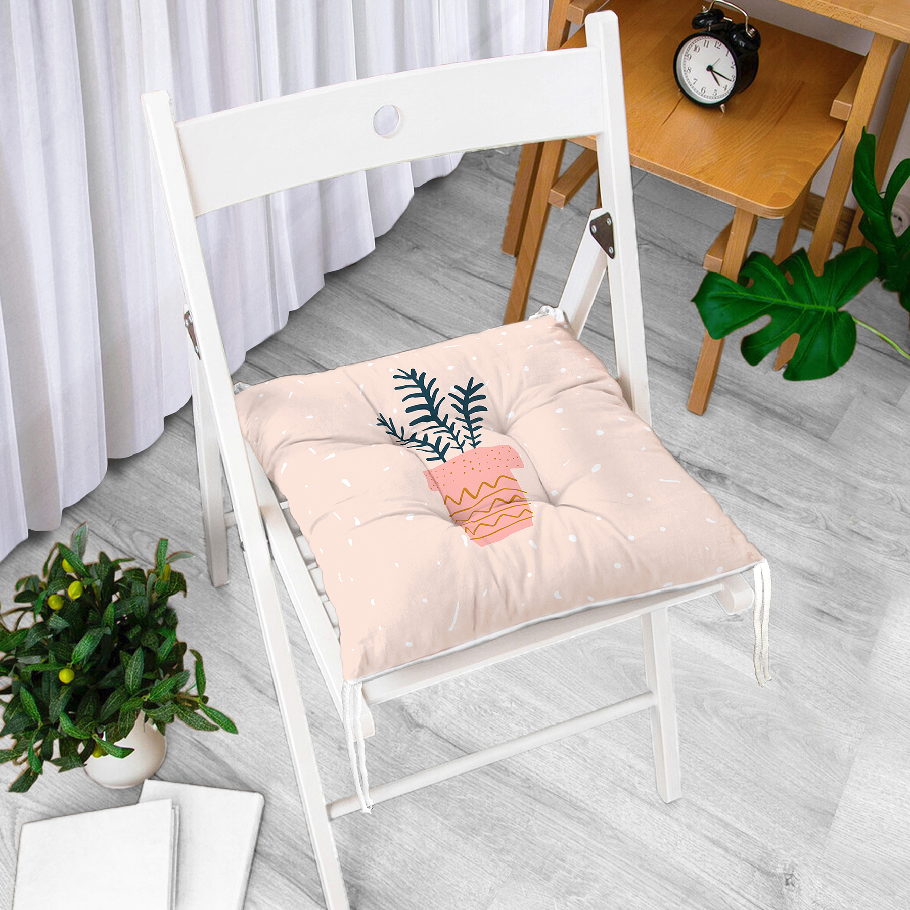 Renkli Zemin Üzerinde Yaprak Desenli Dijital Baskılı Modern Pofuduk Sandalye Minderi