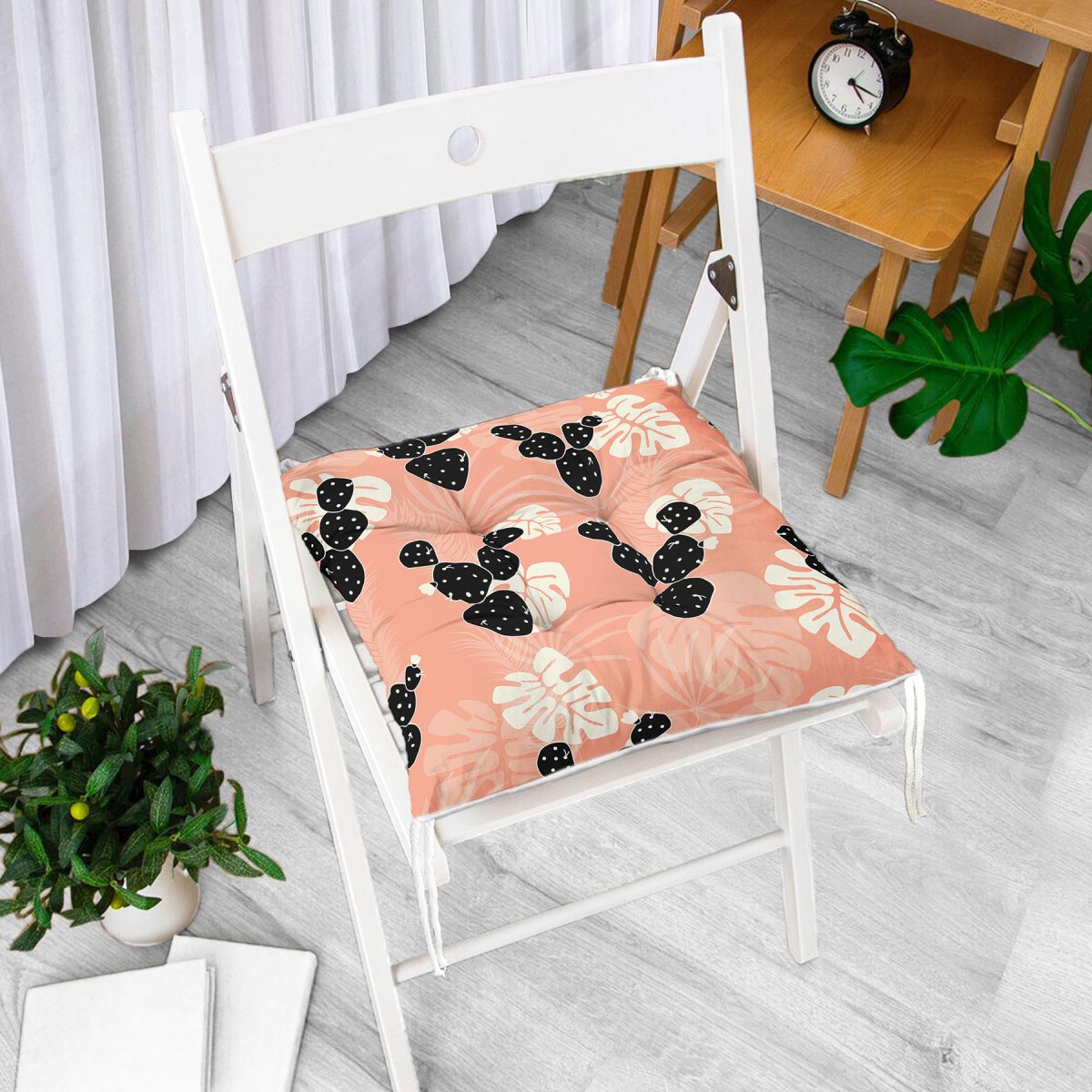 Renkli Zemin Üzerinde Yaprak Desenli Dijital Baskılı Modern Pofuduk Sandalye Minderi