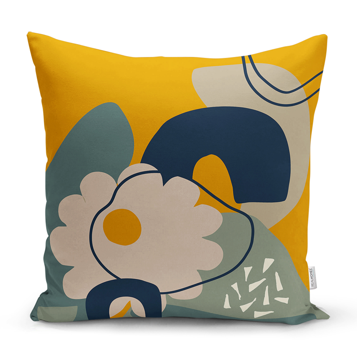 Renkli Zemin Üzerinde Yaprak Desenli Dijital Baskılı Modern Yastık Kırlent Kılıfı Realhomes
