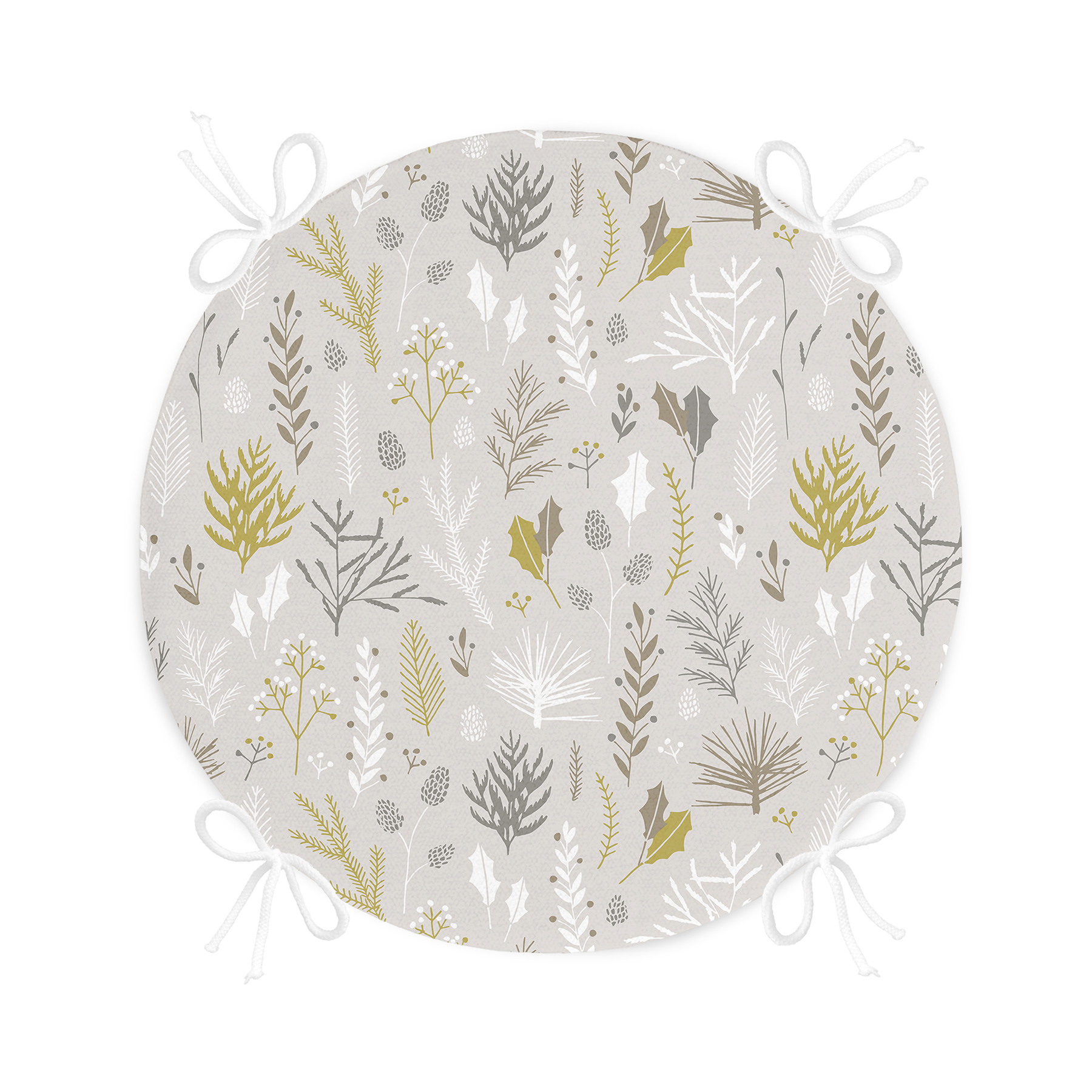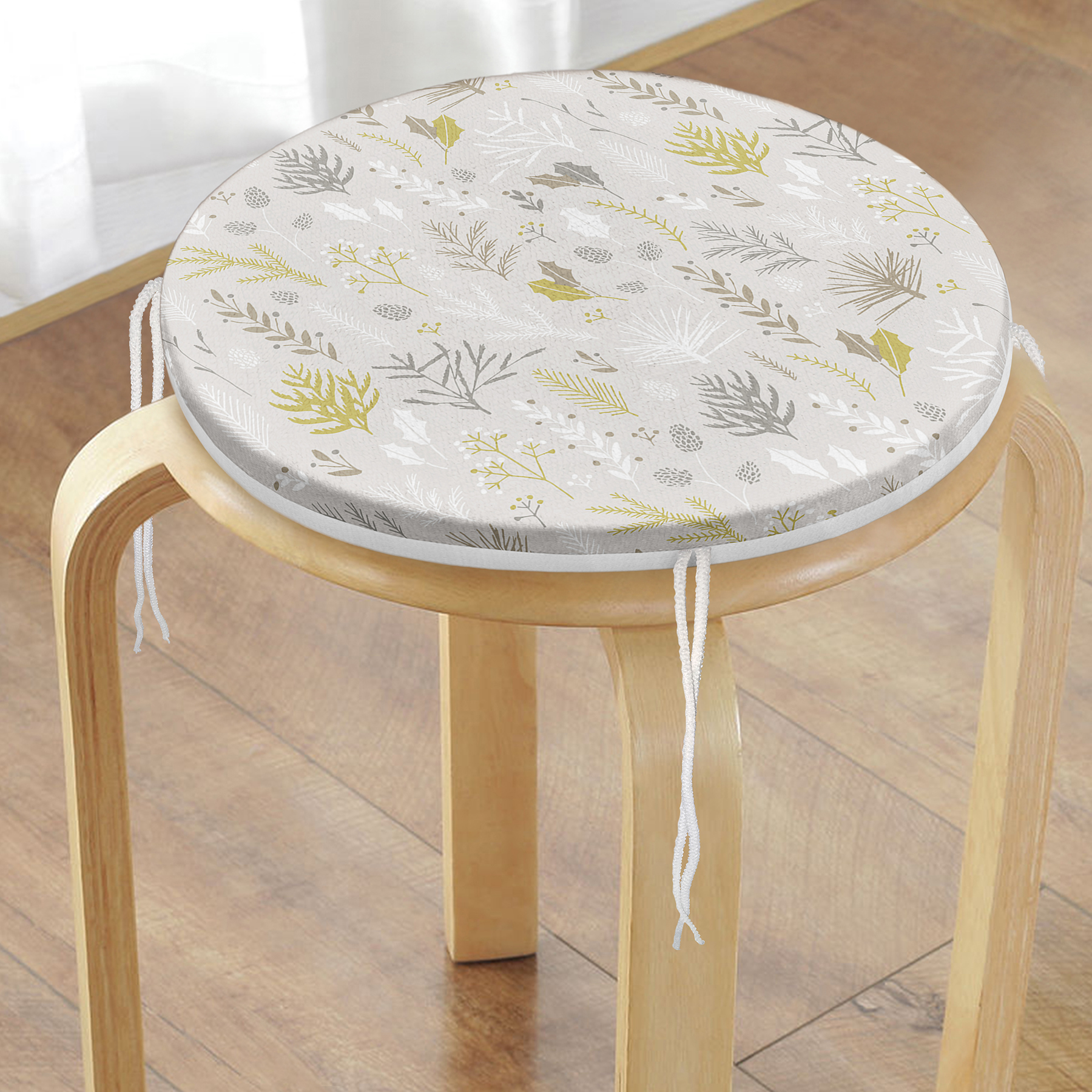 Renkli Zemin Üzerinde Yaprak Desenli Dijital Baskılı Modern Yuvarlak Fermuarlı Sandalye Minderi Realhomes