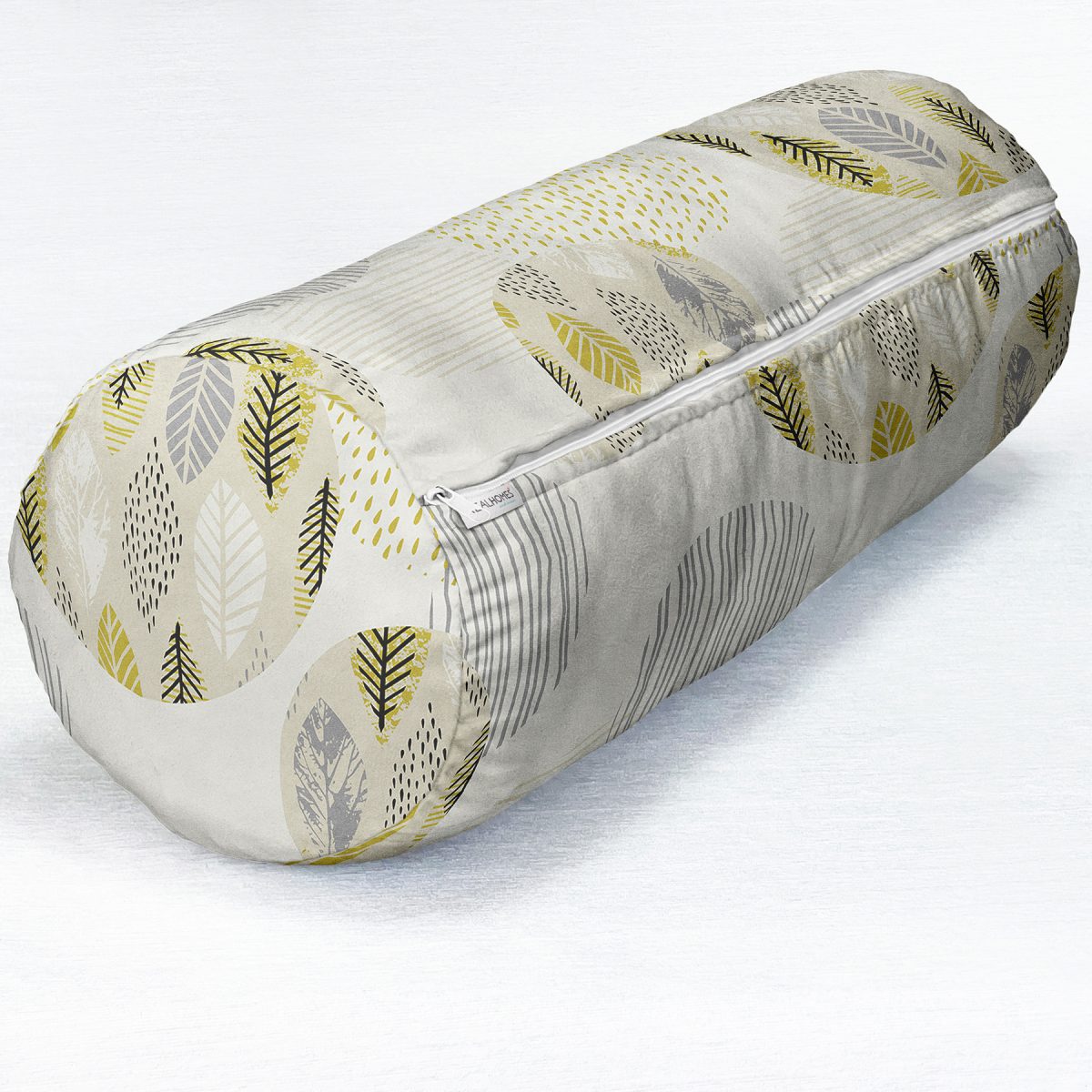 Renkli Zemin Üzerinde Yaprak Motifli Dijital Baskılı Modern İç Dolgulu – Fermuarlı Süet Silindir Rulo Yastık Kırlent