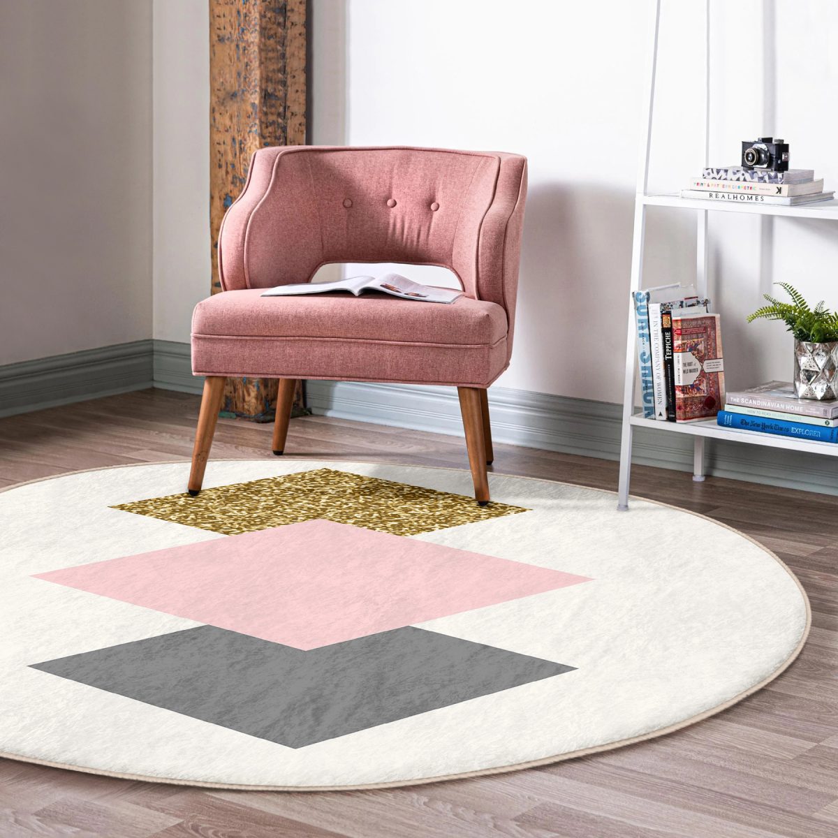 Renkli Zeminde Geometrik Desenli Dijital Baskılı Modern Yatak Odası Yıkanabilir Kaymaz Tabanlı Yuvarlak Halı
