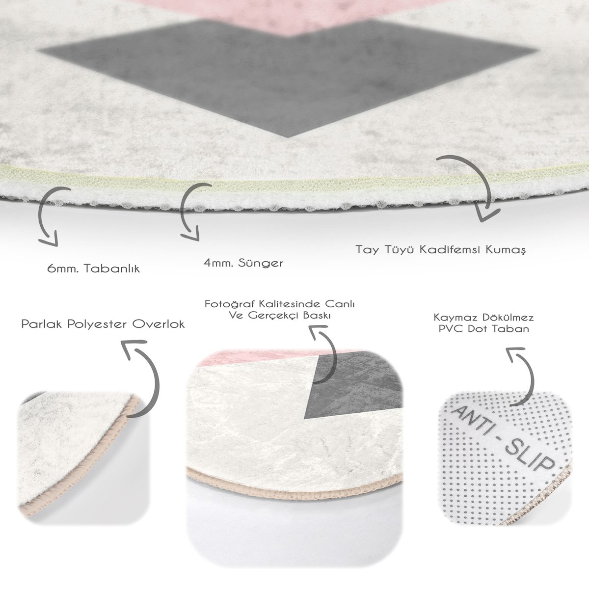 RealHomes Dijital Baskılı Kaymaz Tabanlı Comfort Yuvarlak Halılar, kumaş seçimi ve dikiş detaylarıyla şık bir dekorasyon öğesi olarak kullanımınıza sunulmaktadır. Her bir desen RealHomes tasarımcıları tarafından özenle tasarlanmış ve satışa sunulmuştur. Fotoğraf kalitesinde canlı ve gerçekçi baskılarımız yıkamaya ve kullanıma bağlı olarak solma yapmaz, yıllar boyu ilk günkü özelliğini korur.