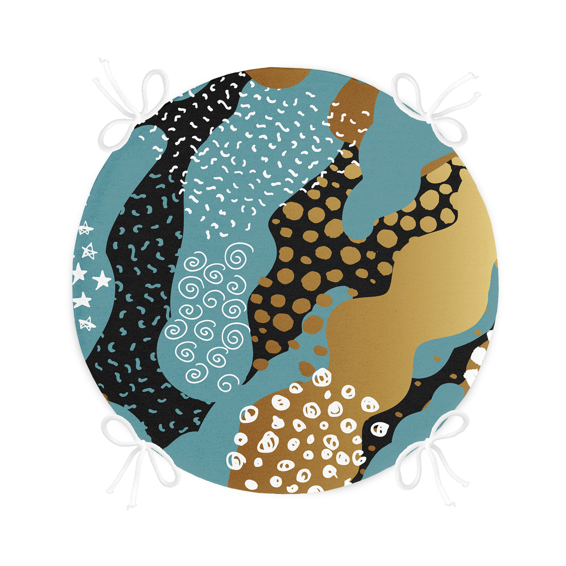 Renkli Zeminde Gold Detaylı Dijital Baskılı Modern Yuvarlak Fermuarlı Sandalye Minderi Realhomes