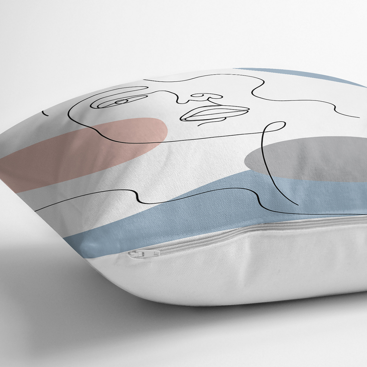 Renkli Zeminde Onedraw Çizimli Bayan Silüeti Dijital Baskılı Modern Yastık Kılıfı