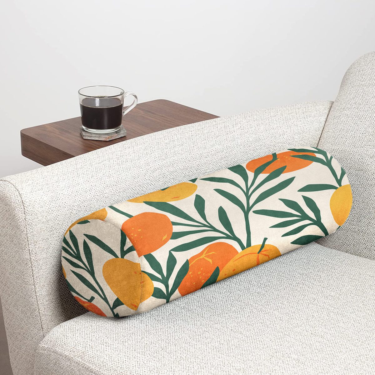 Renkli Zeminde Onedraw Çizimli Limon Desenli Dijital Baskılı Modern İç Dolgulu Yumuşak Silindir Form Yastık Kırlent