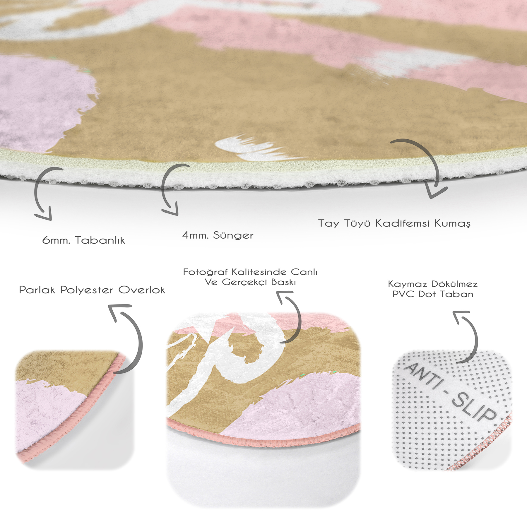 RealHomes Dijital Baskılı Kaymaz Tabanlı Comfort Yuvarlak Halılar, kumaş seçimi ve dikiş detaylarıyla şık bir dekorasyon öğesi olarak kullanımınıza sunulmaktadır. Her bir desen RealHomes tasarımcıları tarafından özenle tasarlanmış ve satışa sunulmuştur. Fotoğraf kalitesinde canlı ve gerçekçi baskılarımız yıkamaya ve kullanıma bağlı olarak solma yapmaz, yıllar boyu ilk günkü özelliğini korur.