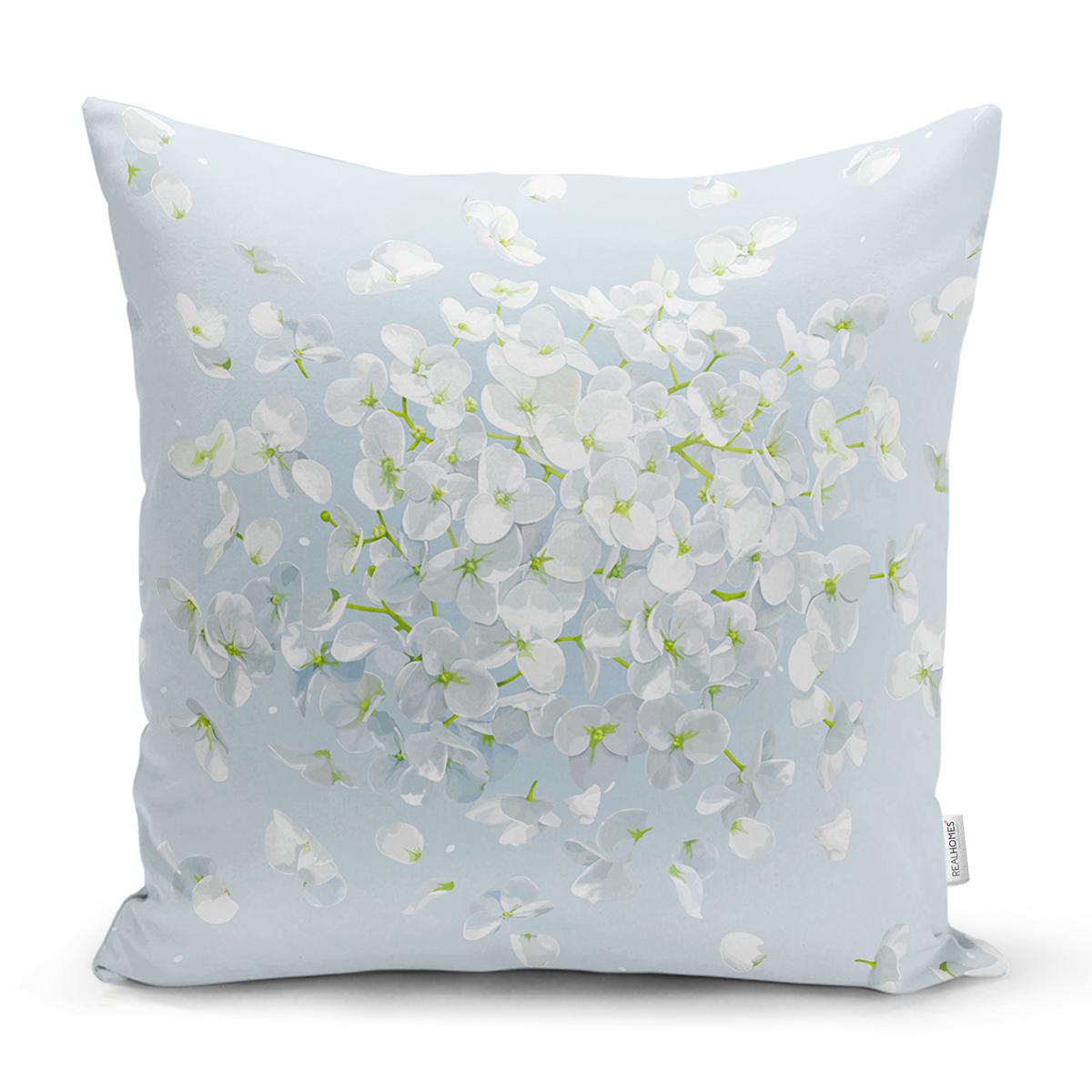 Rengarenk Zeminli Beyaz Ortanca Çiçek Desenli Dijital Baskılı Modern Kırlent Kılıfı