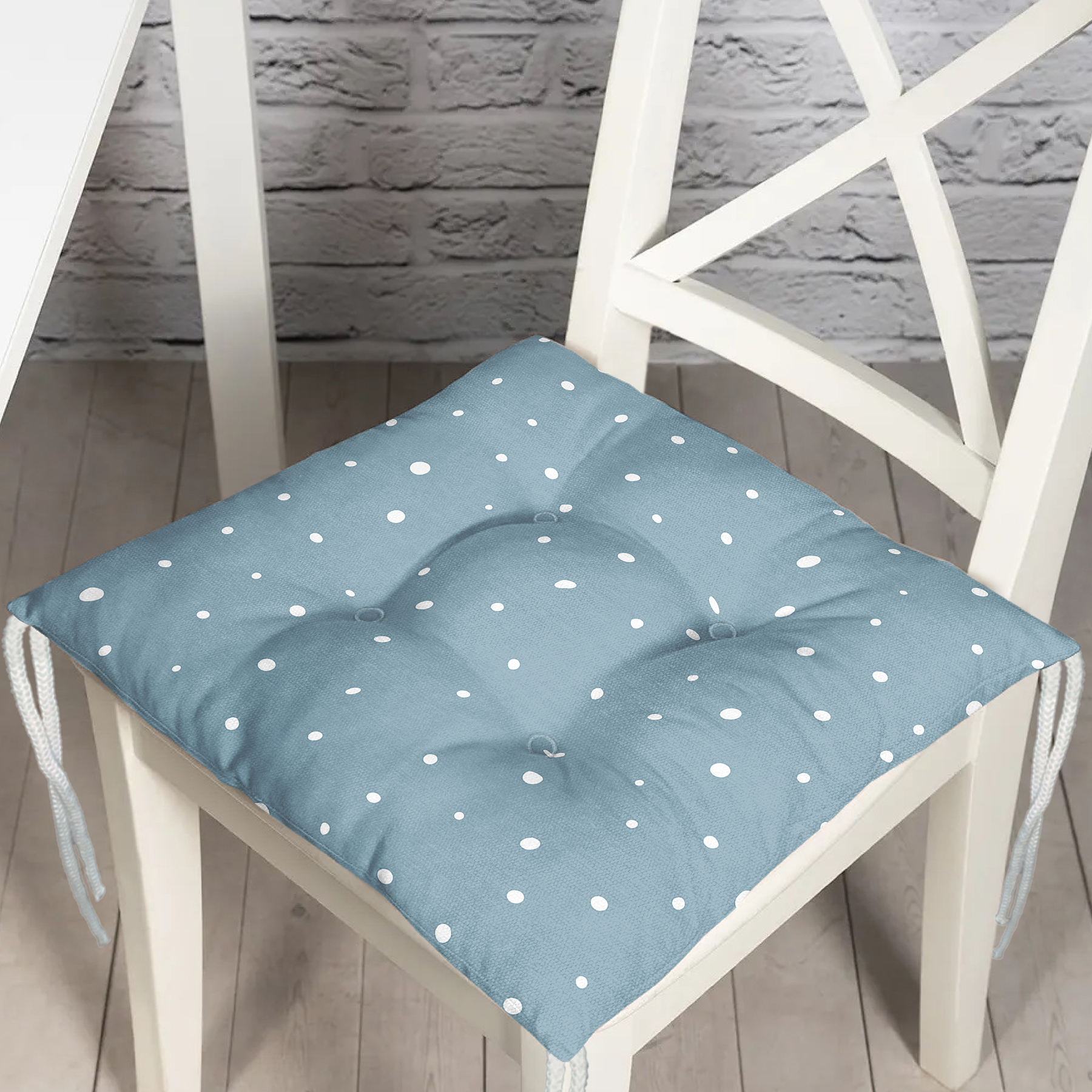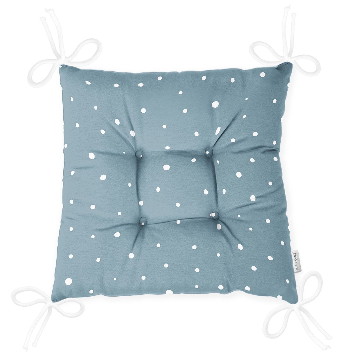 Renkli Zeminli Beyaz Puantiyeli Dijital Baskılı Modern Pofuduk Sandalye Minderi Realhomes
