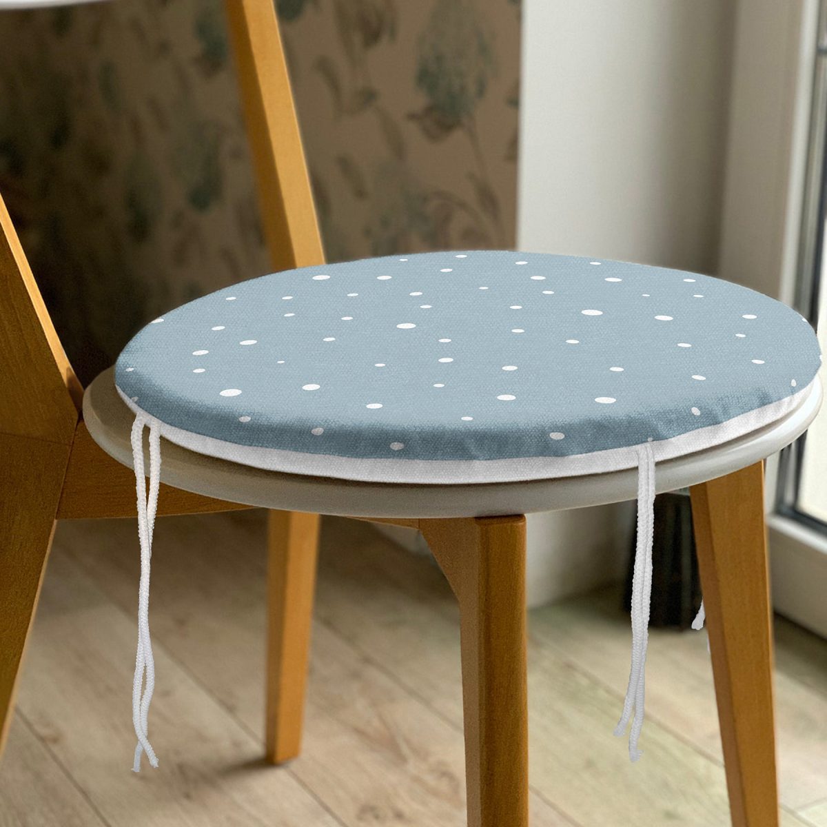 Renkli Zeminli Beyaz Puantiyeli Dijital Baskılı Modern Yuvarlak Fermuarlı Sandalye Minderi