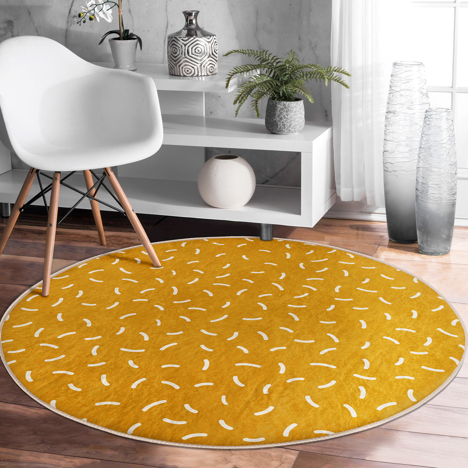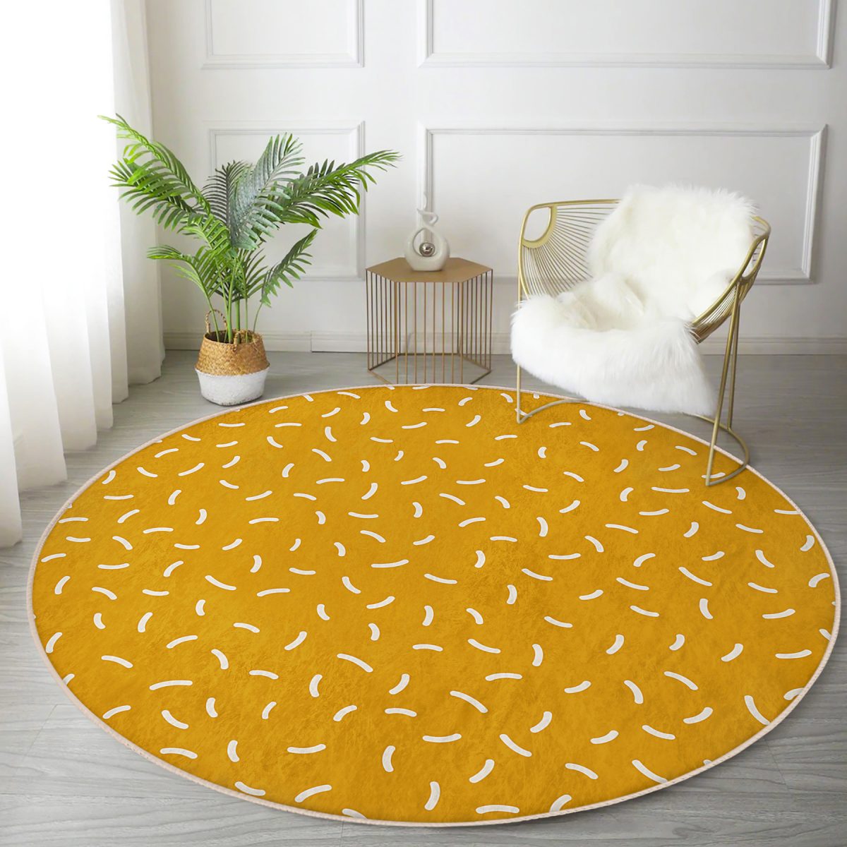 Renkli Zeminli Geometrik Desen Dijital Baskılı Modern Gold Çocuk ve Genç Odası Yıkanabilir Kaymaz Tabanlı Yuvarlak Halı
