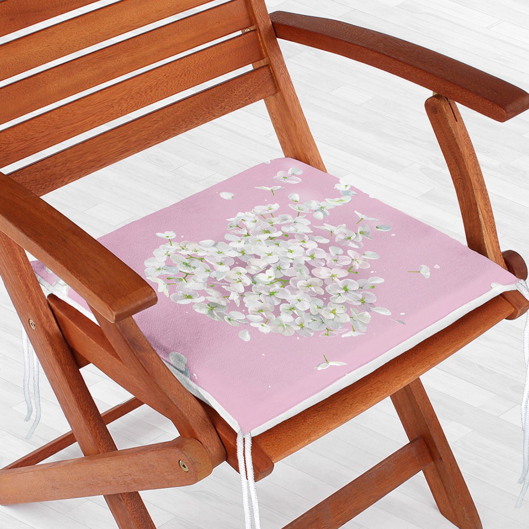 Renkli Zeminli Kalp Desenli Ortanca Çiçek Dijital Baskılı Modern Fermuarlı Sandalye Minderi