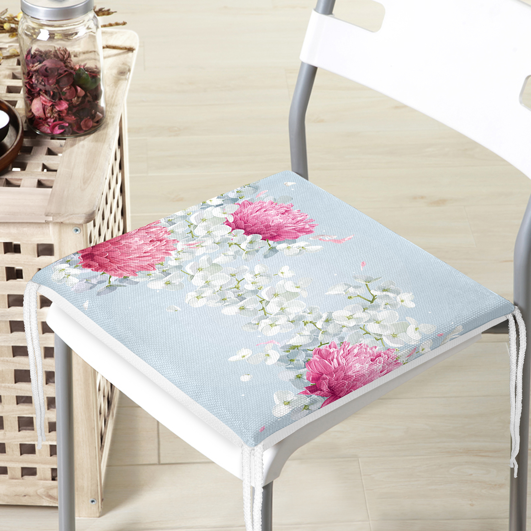 Renkli Zeminli Ortanca Çiçek Desenli Dijital Baskılı Modern Fermuarlı Sandalye Minderi