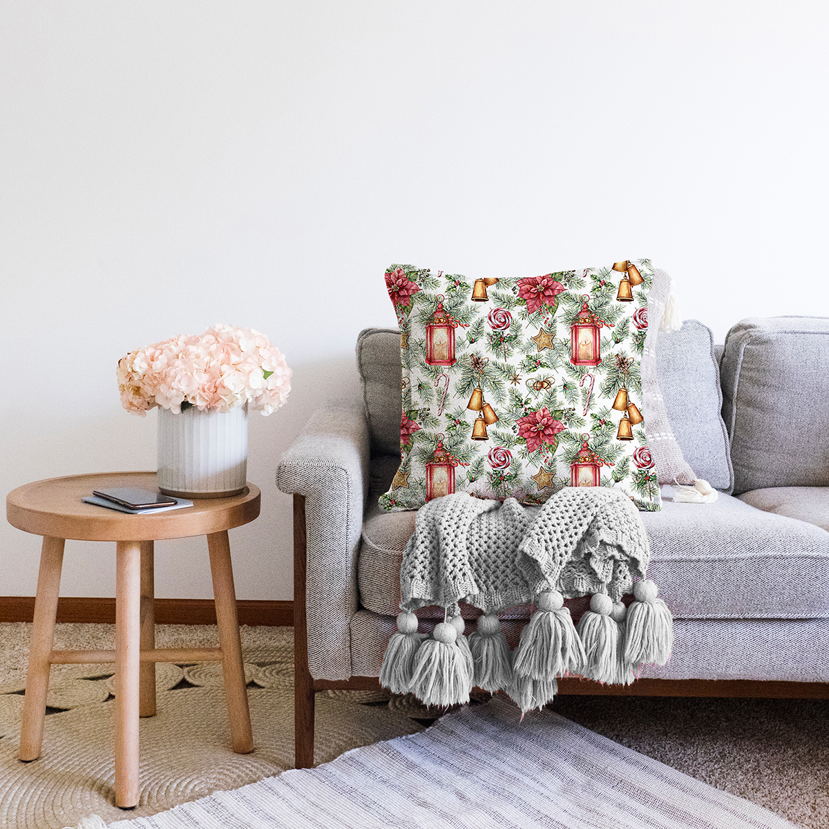 Şamdan Tasarımlı Yılbaşı Konseptli Dijital Baskılı Dekoratif Şönil Yastık Kırlent Kılıfı