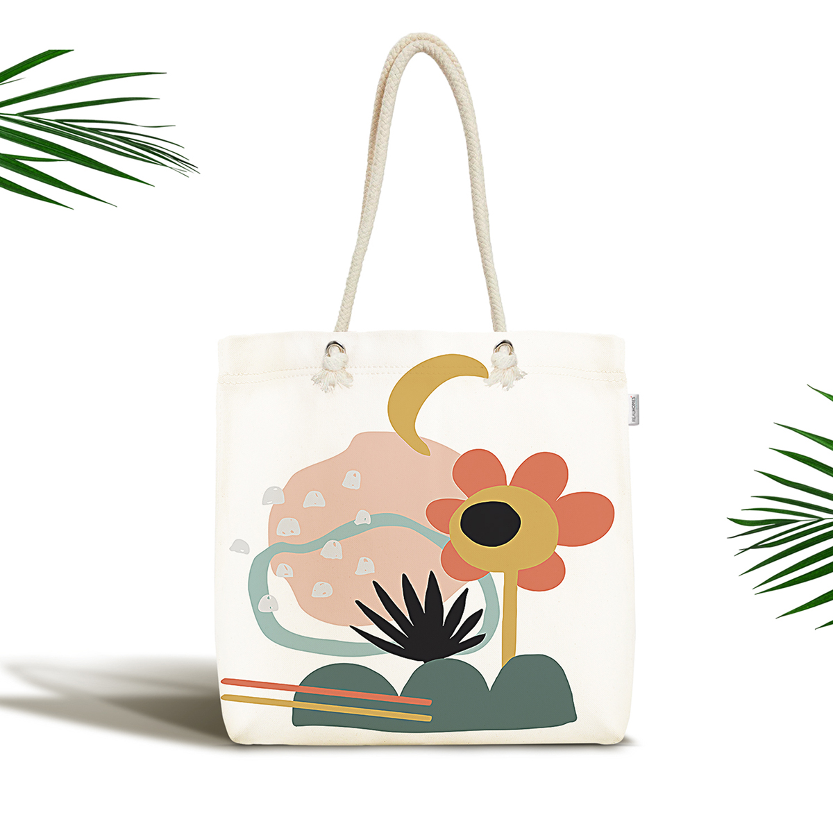 Sanatsal Motifli Çiçek Detaylı Dijital Baskılı Kumaş Plaj Çantası Realhomes