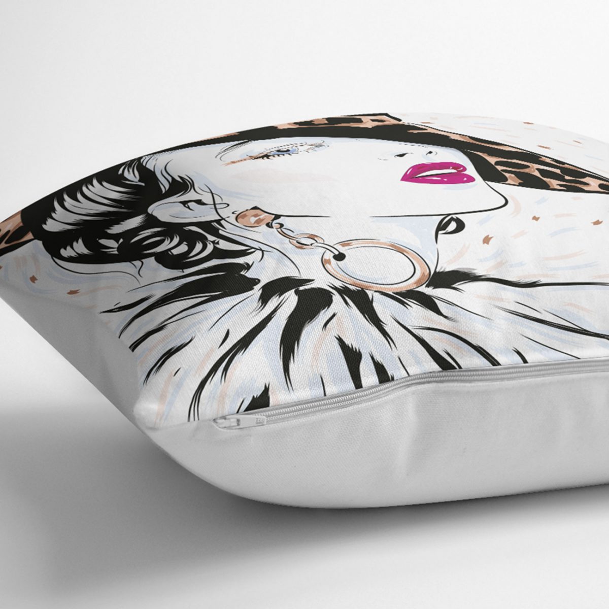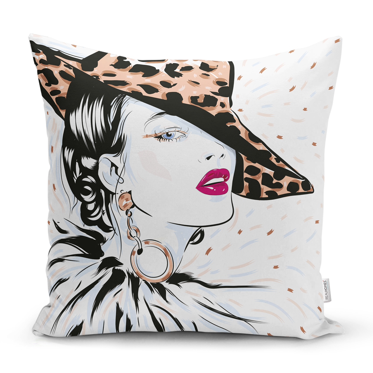 Şapkalı Fashion Girl Desenli Kırlent Kılıfı Realhomes