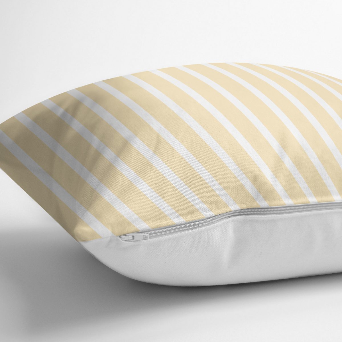 Sarı Beyaz Düz Çizgili Özel Tasarım Dekoratif Yastık Kırlent Kılıfı Realhomes