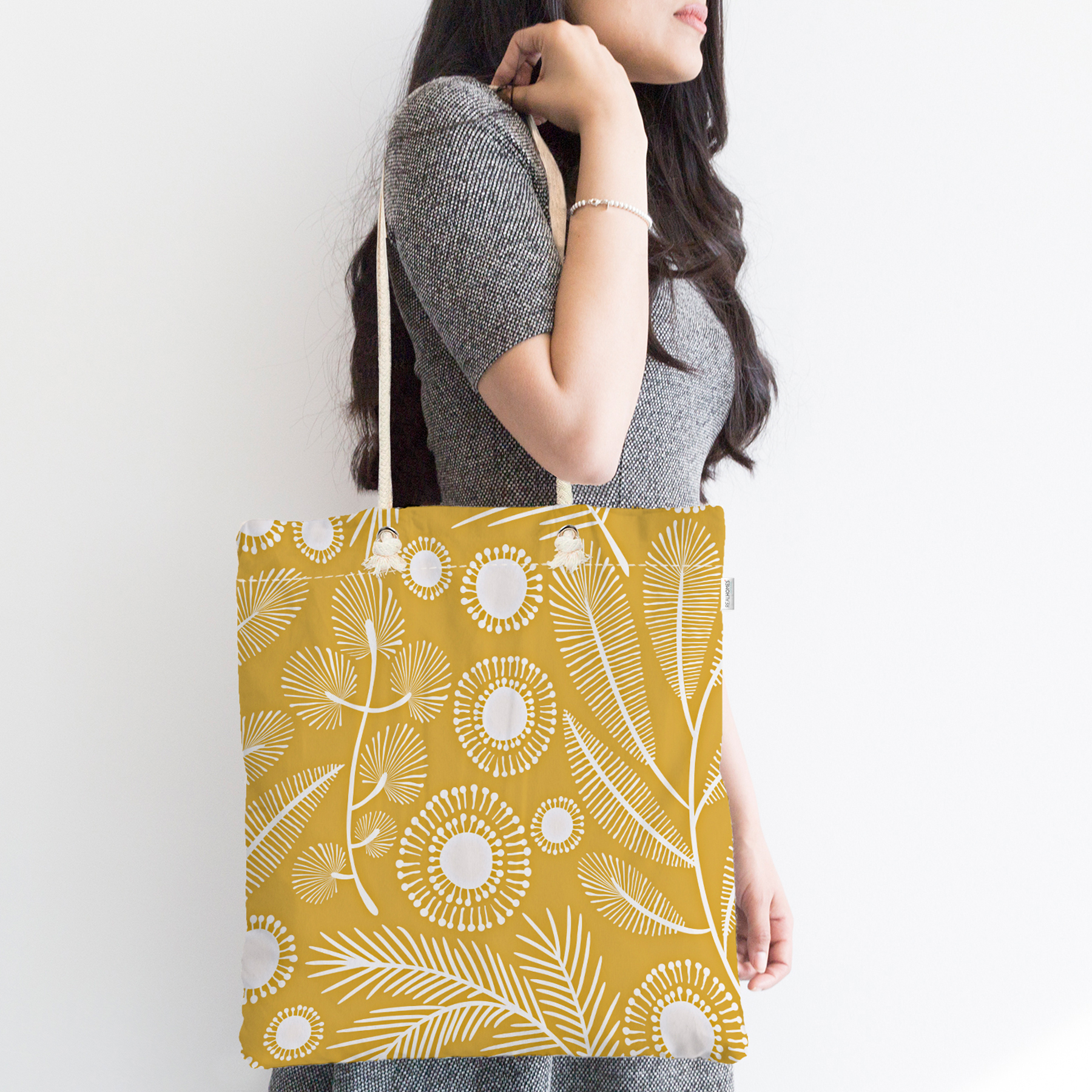 Sarı Renkli Dekoratif Dekoratif Fermuarlı Kumaş Omuz Çantası