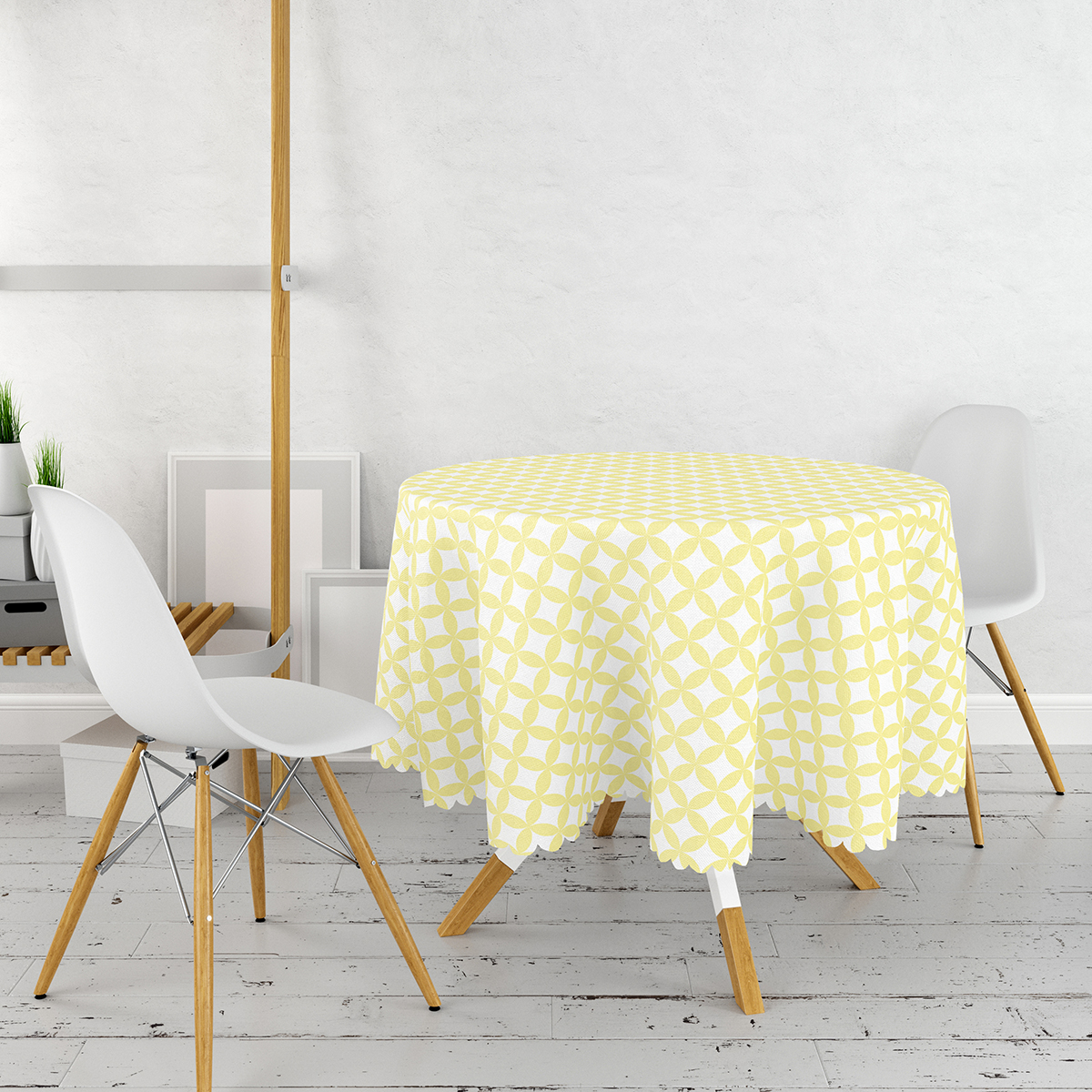 Sarı Renkli Özel Tasarım Dijital Baskılı Yuvarlak Masa Örtüsü – Çap 140cm