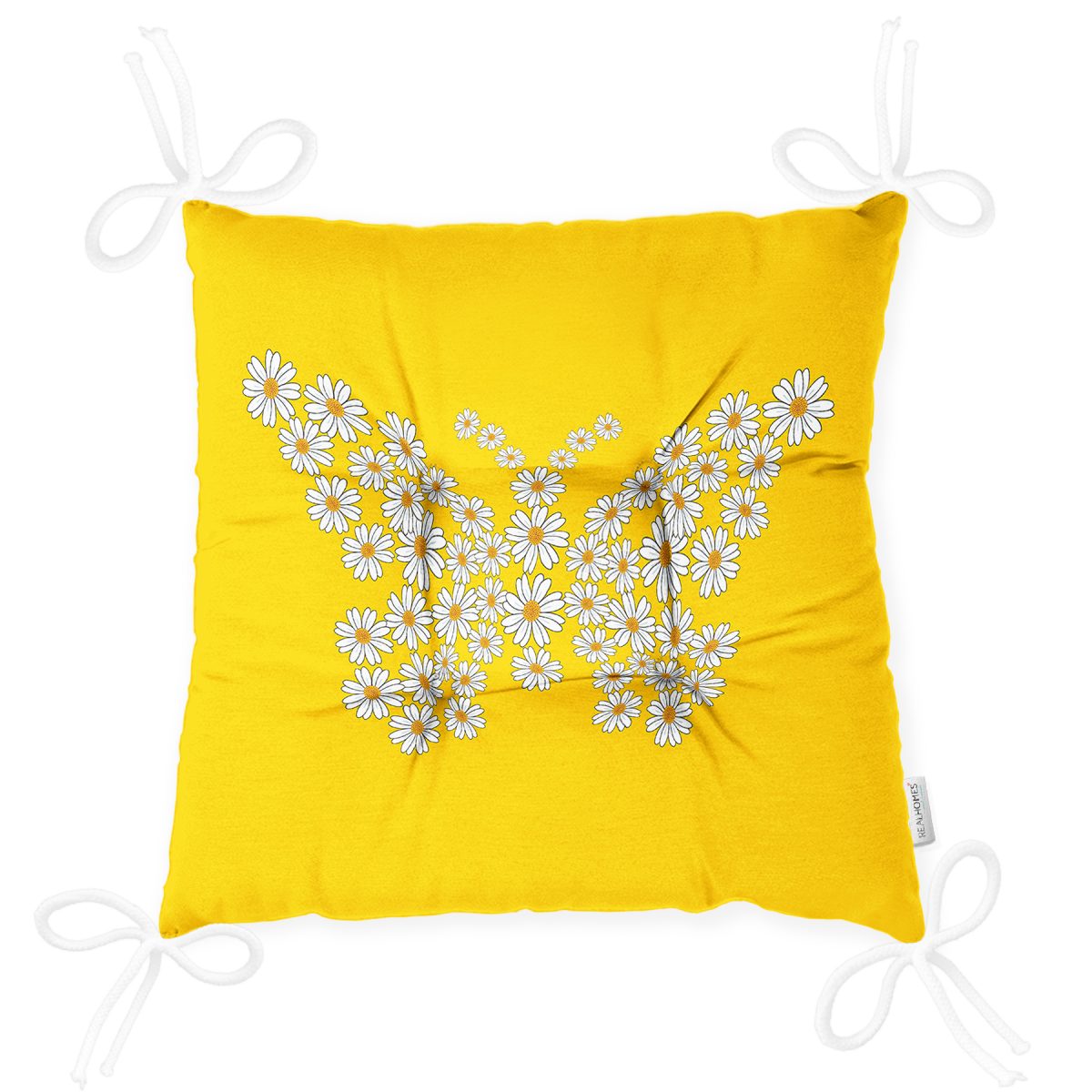 Sarı Zemin Papatyadan Kelebek Tasarımlı Dijital Baskılı Modern Pofuduk Sandalye Minderi Realhomes