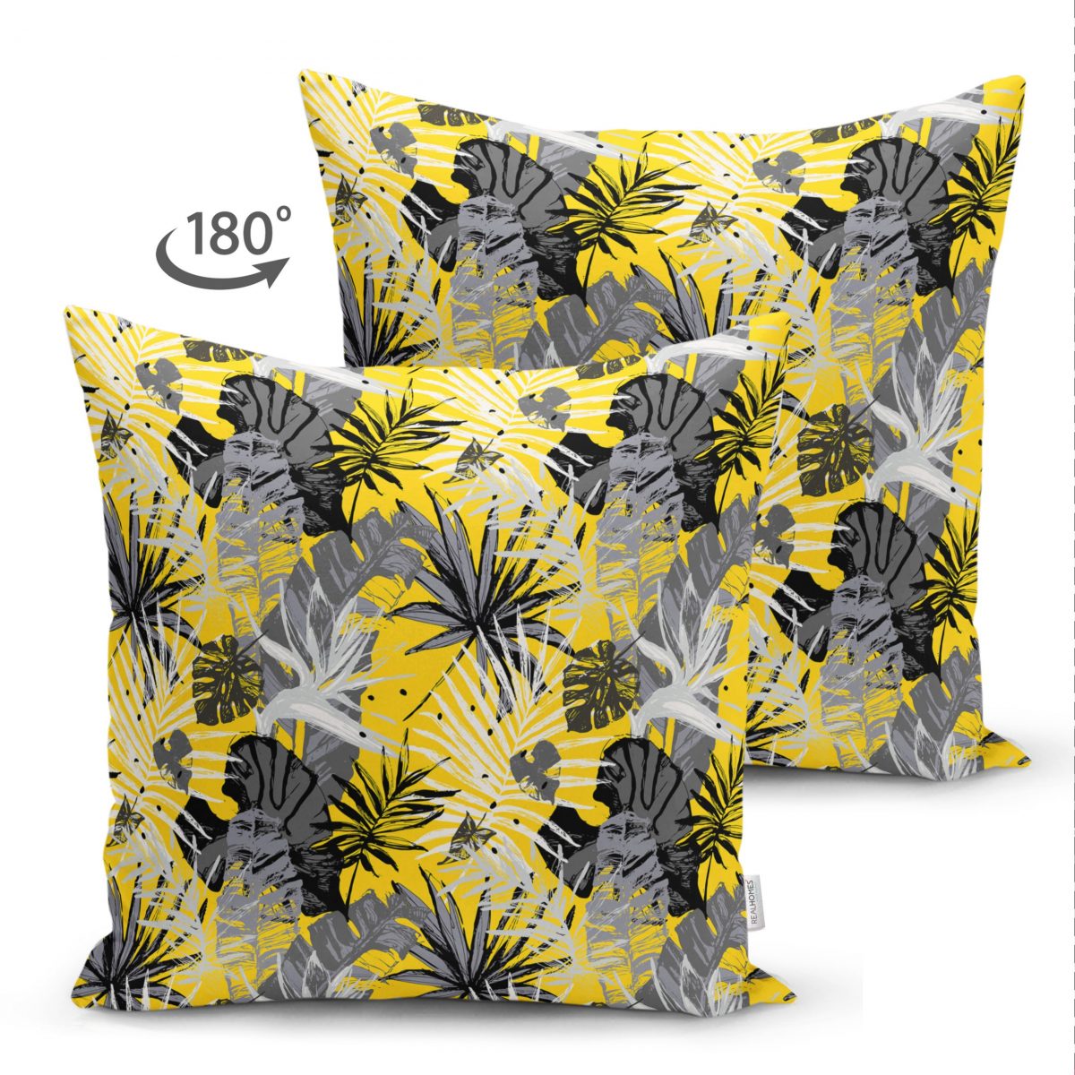 Sarı Zemin Üzerinde Beyaz Ve Gri Yaprak Motifli Çift Taraflı Süet Kırlent Kılıfı Realhomes