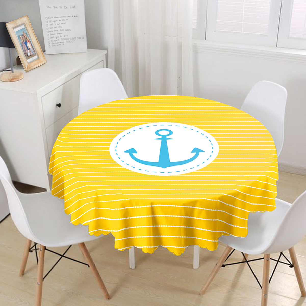 Sarı Zemin Üzerinde Çapa Çizimli Dijital Baskılı Modern Yuvarlak Masa Örtüsü – Çap 140cm