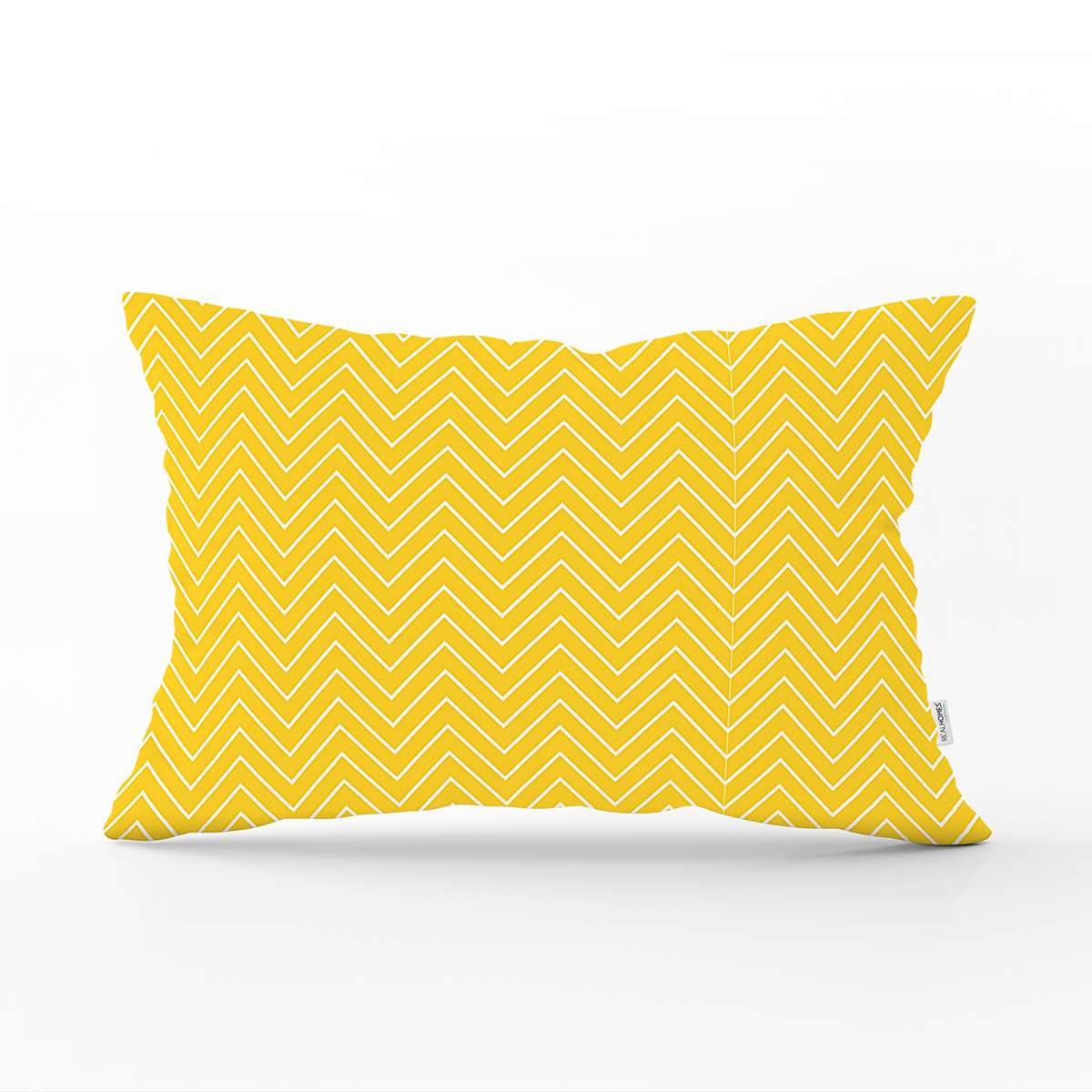 Sarı Zemin Üzerinde Geometrik Çizimli Dijital Baskılı Modern Dikdörtgen Yastık Kırlent Kılıfı